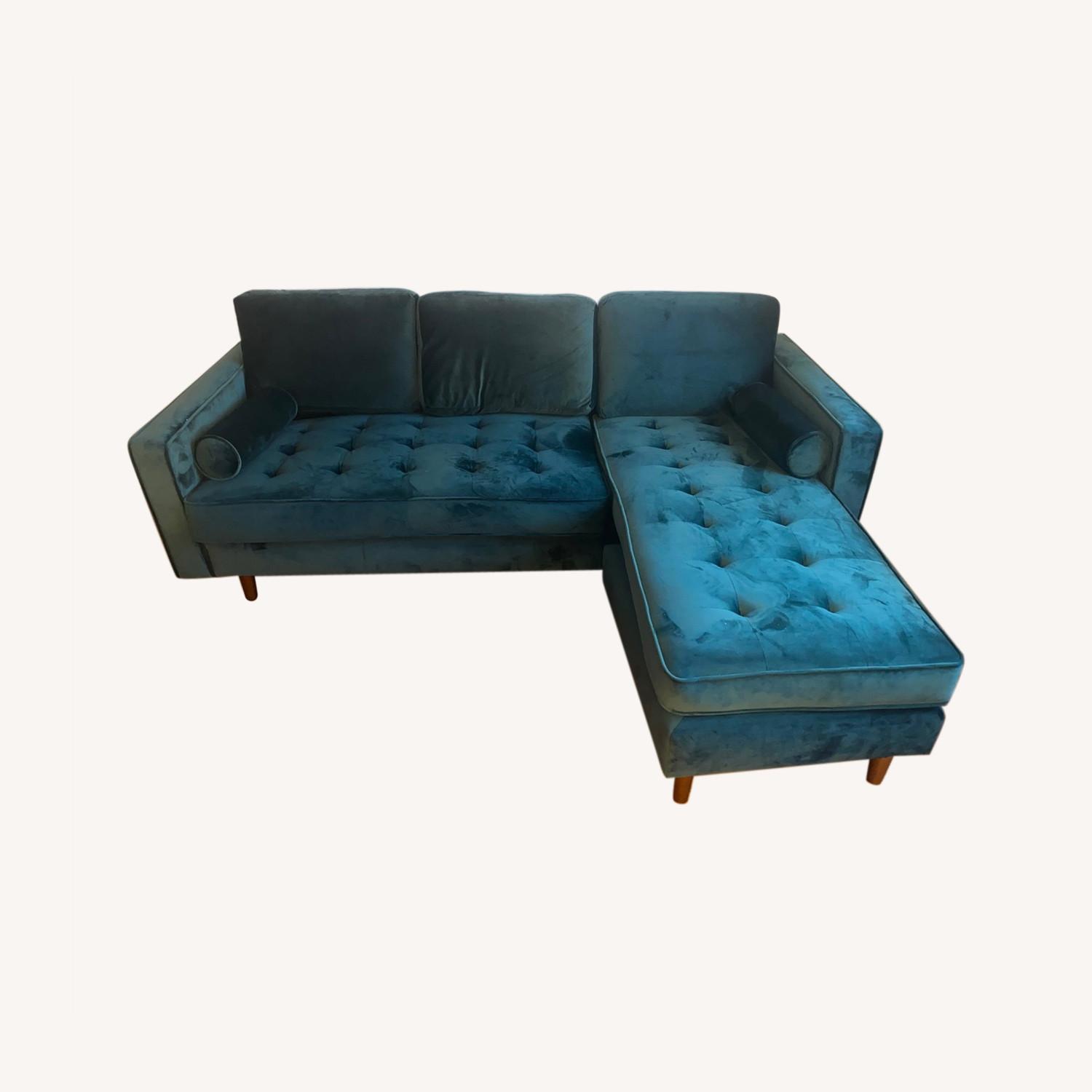 Seller's Notes:Hi- selling this beautiful emerald green velvet couch as I have to relocate for work again. Just ordered it on October 14th so I’ve only had it for a little over a month. Originally paid $1,200 and letting it go for $750. A picture of two small unnoticeable burns is included and why I’m selling it at this price. MUST PICK UP. This color is currently sold out on Wayfair’s site. Website couch description below: Incorporating classic lines with a streamlined silhouette, this reversible sectional sofa is the perfect combination of traditional design with a mid-century modern flair. Luxurious velvet upholstery provides an elegant look. A single-seat cushion with a modern block-style tufting and two comfortably designed back cushions are perfectly complemented by two round bolster pillows. The tapered walnut-stained conical legs provide ample support while adding style and sophistication. Its versatility is amazing. No longer do you have to choose. No longer do you have to pick a side. No longer are you tied down? What's Included? Toss Pillow Chaise Included Sofa Included Ottoman Included Product Details Storage Space Included: No Seating Capacity: 3 Cushion Construction: Fiber Wrapped Foam Design: Stationary