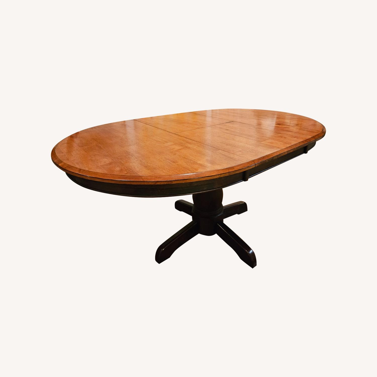 Seller's Notes:Extendable solid wood dining table for sale. Round table extendable to oval. Leaf is cleverly hidden inside the table and is easy to extend. Extremely well maintained, no pets no smoking. and no scratches Size - Round - 42 inch Extended - 60 inch by 42 inch