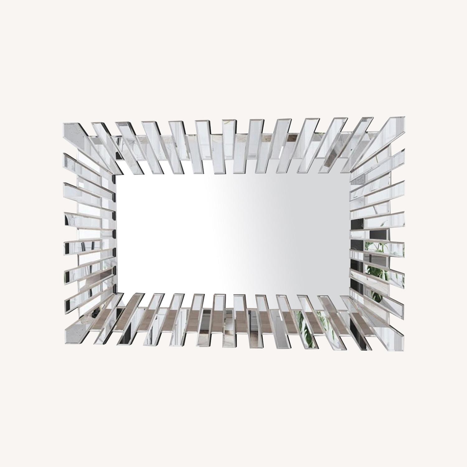 This striking accent mirror is designed with a starburst 3D frame surrounded by interlaced rectangular glass. It's a perfect decor item to for hanging any home, room, hotel, or business place because of its unique sensational style.