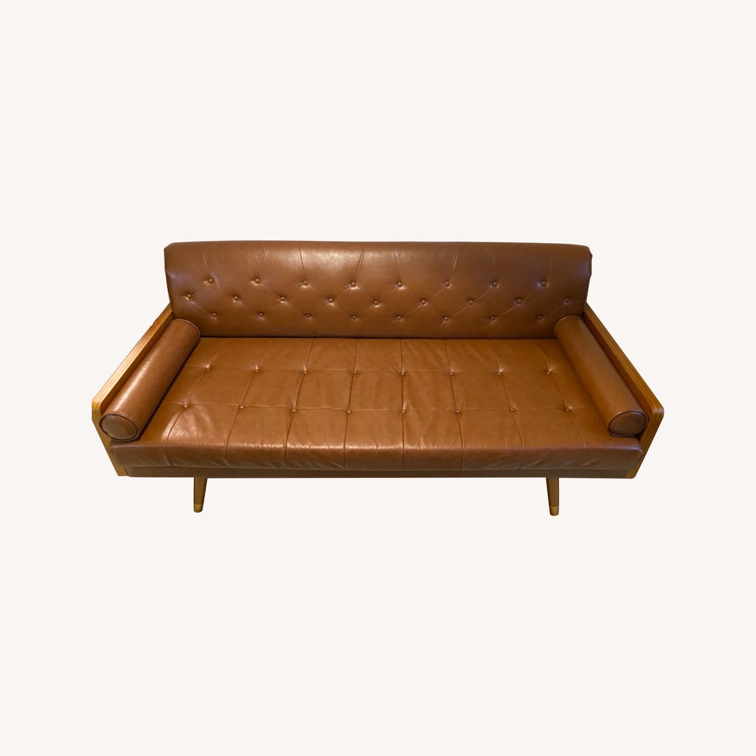 Seller's Notes:I loved this baby at first sight! It’s a small couch that is good for 2-3 people, perfect for a studio/1B. I bought it brand new in July 2020, so less than half a year old. It has beautiful leather-like texture. No noticeable flaws/stains and no exposure to pets/smoking. Sadly parting way with it only because I’m moving in with my SO and we’ll be buying a bigger cognac leather sofa—just because I loved this one so much. In person pick up is free in my elevator building!