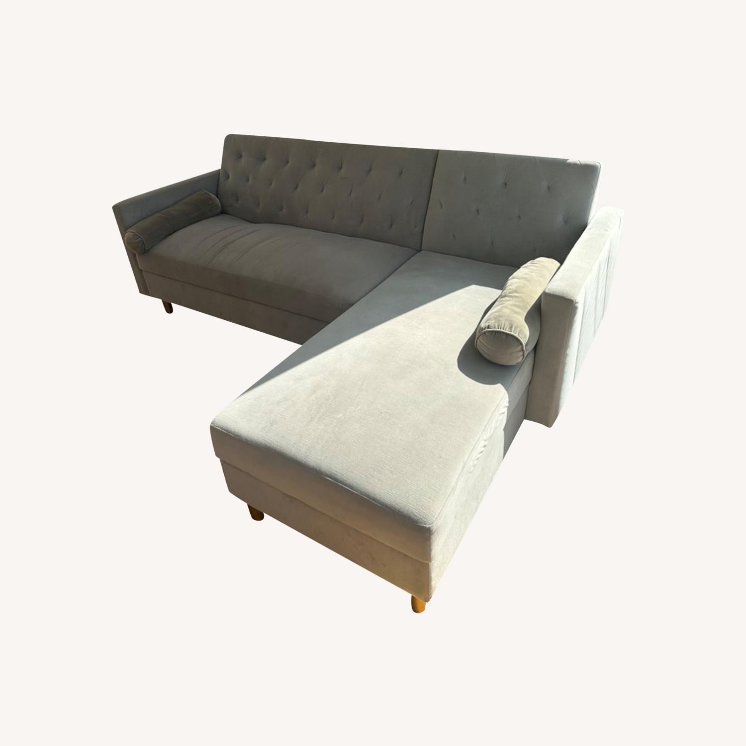 Seller's Notes:Medium size sectional available. Reclines back to lay flat. Has storage under chaise. Appropriate Measurements 34.25'' H X 83.07'' W X 49.61'' D 3 years old