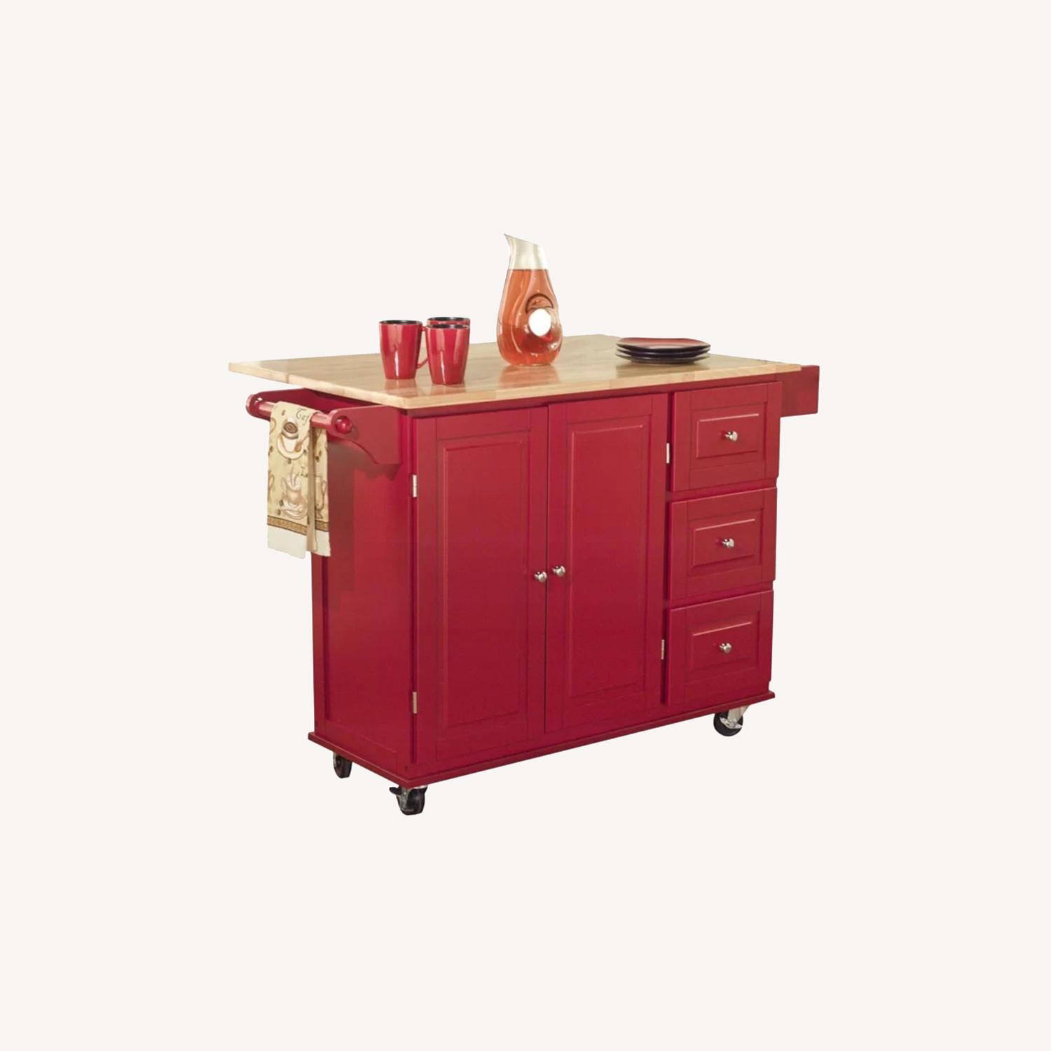 Seller's Notes:This striking red kitchen island vastly expands your cooking and storage space. Only a few months old. It was difficult to build, but it comes to you already assembled! Measurements listed are with the expansion leaf. Without the expansion, the depth measures 18 inches. I love it dearly, but sadly it won't fit in my new apartment.