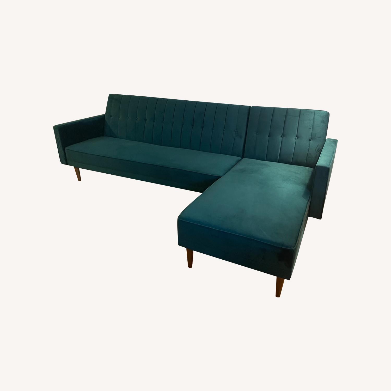 Seller's Notes:This 2-piece sectional is a beautiful jewel-toned green and provides the perfect pop of color for all types of decor styles, from Traditional to Midcentury Modern. DIMENSIONS: 36.5 H x 112.25 W x 68.0 D inches. The cushion quality is excellent and I have never experienced any back pain from falling asleep on it! This is my most precious piece of furniture and I hope it makes your home feel as bougie as it did mine :)