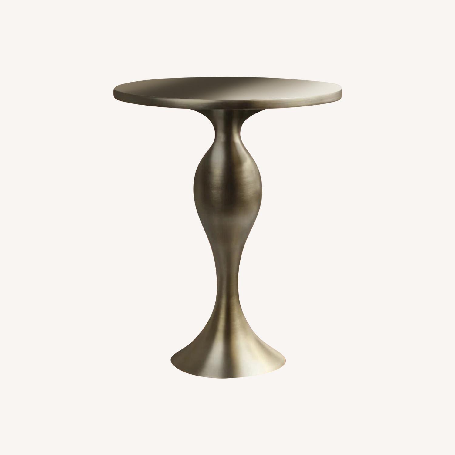 Whether sidled up to a sofa or perched between two accent chairs, an end table is a handy touch for rounding out any living ensemble in style. Take this one, for example: perfect for a glamorous option in any space, it's crafted from a circular metal surface founded on a sweepingly curved pedestal base for a touch of retro-inspired glamour. A gleaming metallic finish rounds this piece out with an additional pop of glam. And since it's a slim option perfect for narrow nooks or cramped corners.