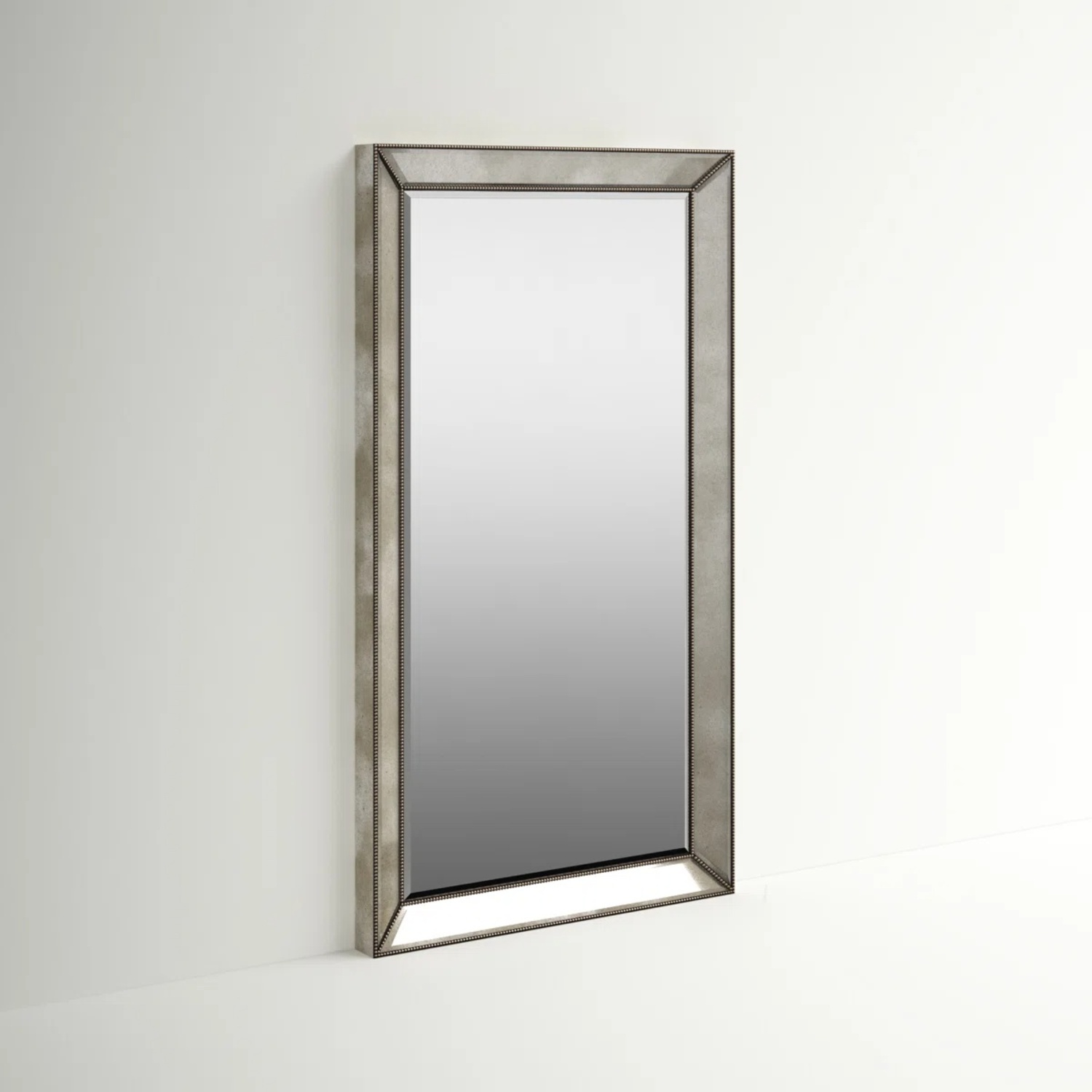 The Beaded Floor Mirror epitomizes timeless elegance with its traditional yet glamorous design. Crafted with a rectangular silhouette, it boasts a luxurious finish that exudes sophistication. The mirror frame is adorned with intricate beading, adding a touch of opulence to any space. Featuring beveled edges, this mirror not only enhances the aesthetics of the room but also provides functional elegance.