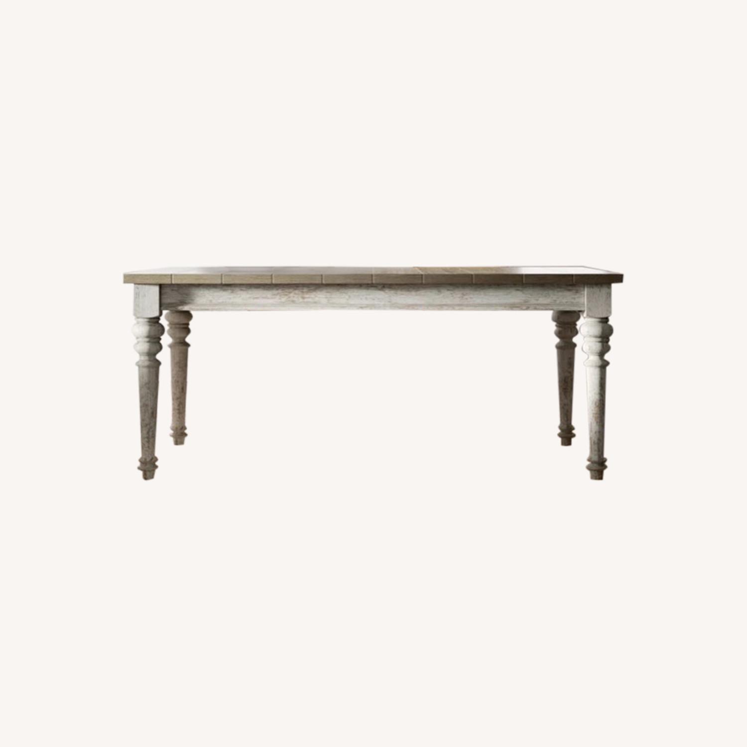 Seller's Notes:Bought this set thinking it would fit in my apartment, but my area is too small. Never ever used!!! Has farmhouse look, but absolutely gorgeous and perfect. Purchased on Wayfair.