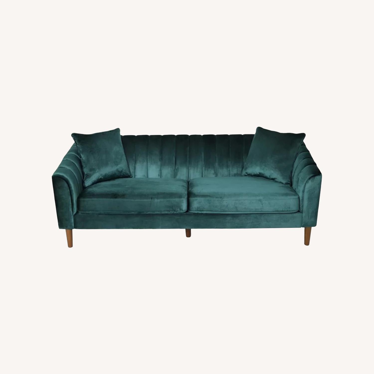 Seller's Notes:Brand: Kelly Clarkson Home 84-inch Recessed Arm Sofa Color: Teal/ Green Bought less than one year ago Already Assembled No noticeable wear and tear (Moving Sale)