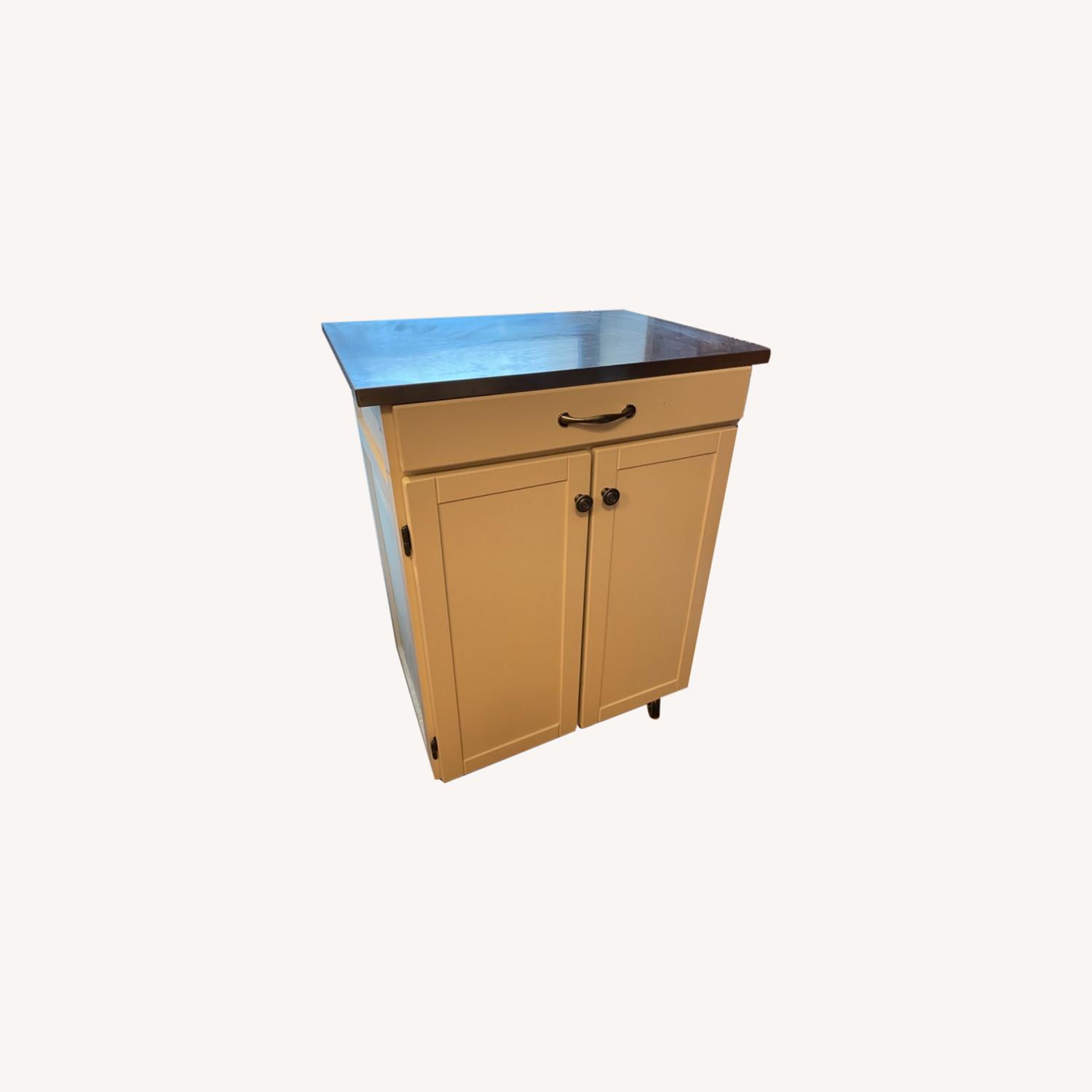 Seller's Notes:Great Kitchen Prep and Storage cart to add a bit more storage and counter space to that tiny New York kitchen! In great shape and on wheels so can be easily moved. Been loved the last two years in a home with no smoke and no pets. Minor blemishes on the top but otherwise in great shape.