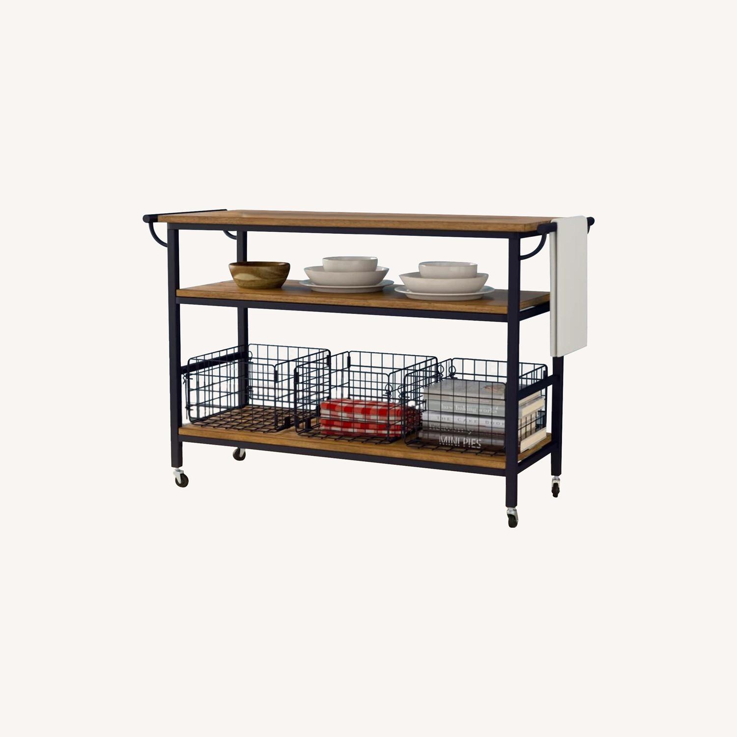 Seller's Notes:Lovely kitchen/bar cart. In great condition. Only a few scratches on bottom shelf where baskets are. Otherwise, great condition and so functional. Weight capacity = 80 lb / Shelf weight capacity is 30 lb 31.38'' H x 47.63'' W x 17'' D (NOTE APT DECO DOES NOT ALLOW DECIMALS FOR LISTING) Only 2 years old. Selling because we are moving and no longer need. Please message if you have any questions.