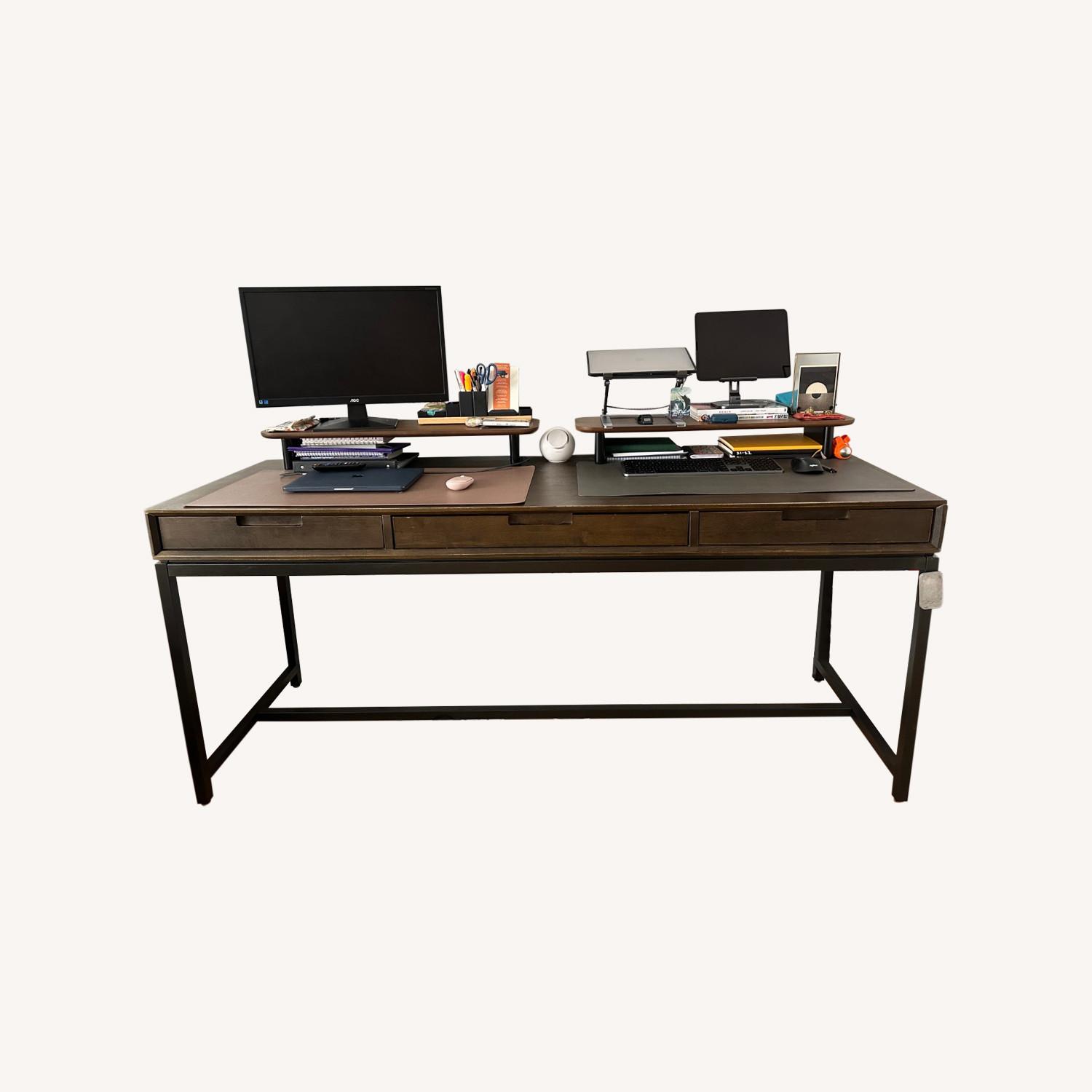 Seller's Notes:Large office desk with plenty of workspace in EXCELLENT CONDITION. Perfect for 2 people or for extra room. Minor scratches at cabinet handles from use.