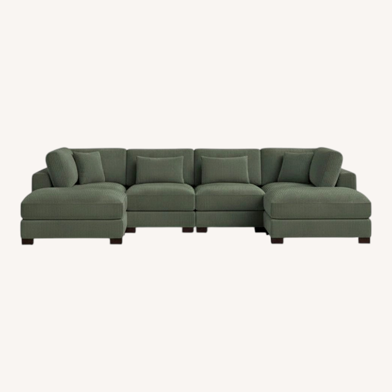 Seller's Notes:Latitude Run Satter - U Shaped Hunter Green Corduroy Sectional Couch