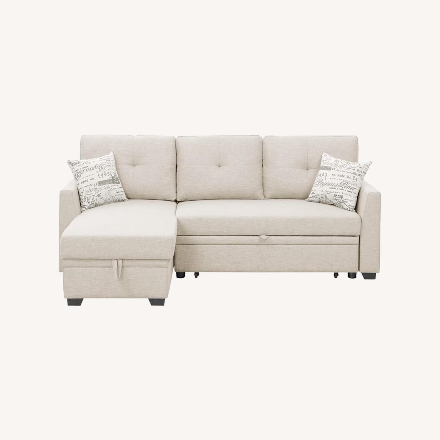 This easy pull-out sleeper sectional will make your space feel casual and cozy! Upholstered in durable linen-like fabric and designed with plush back cushions and medium firm seat cushions make for one comfortable landing pad. Featuring square arms, tufted back cushions, and a chaise with storage, this functional sectional add just enough panache to your space and is ready to pop out to host your guest for the most restful night of sleep they've ever had! Toss pillows are included.