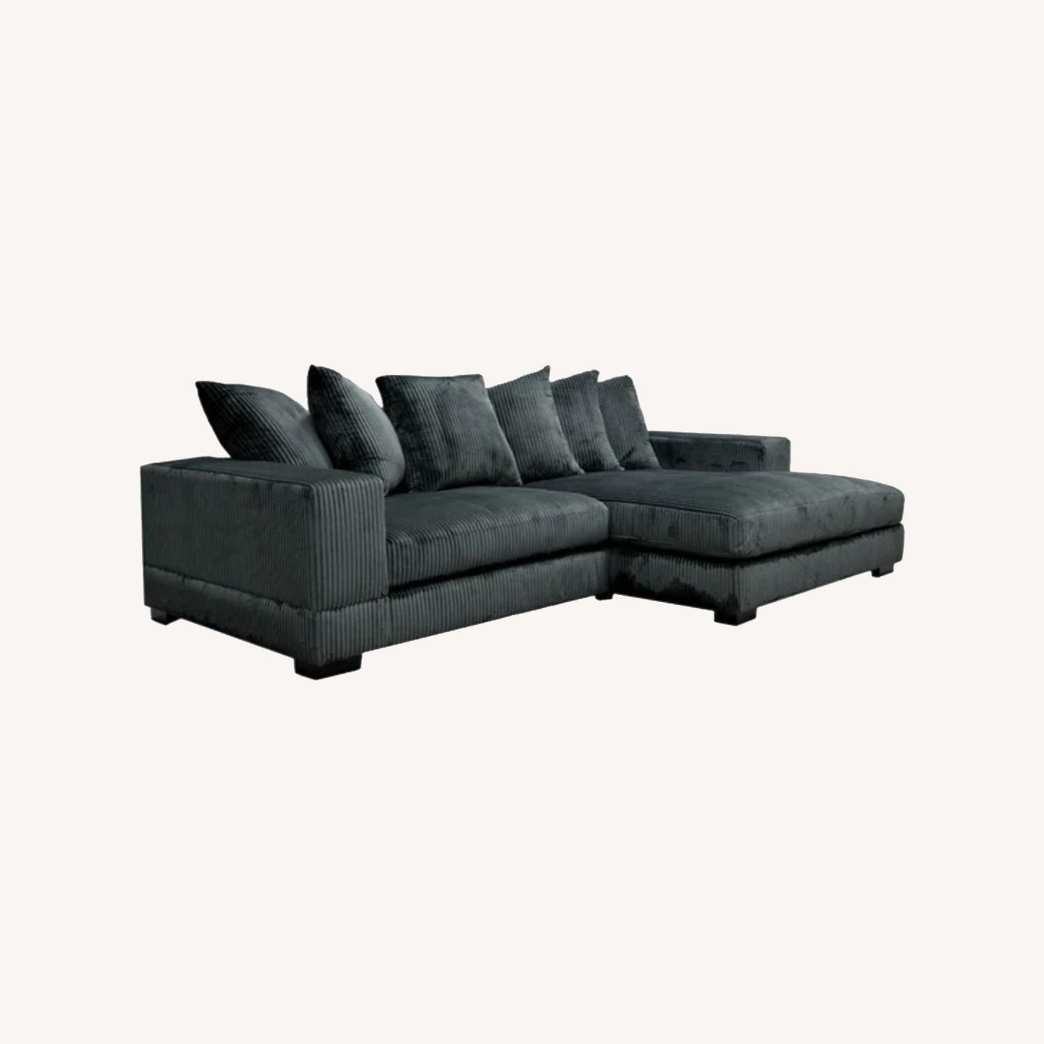 Seller's Notes:Luxe 2 - Piece Upholstered Sectional-Dark Grey Brand: Home by Sean & Catherine Lowe Chaise: Right hand side $1000 OBO Luxe 108” Wide 2 Piece Sectional Two main pieces for easier moving! Please take a look at the screenshot photos for specifics/dimensions. In GREAT condition! Friends & family rave it’s the most comfortable couch! Sad to part with it, but I’m moving and unable to bring it to the new place.