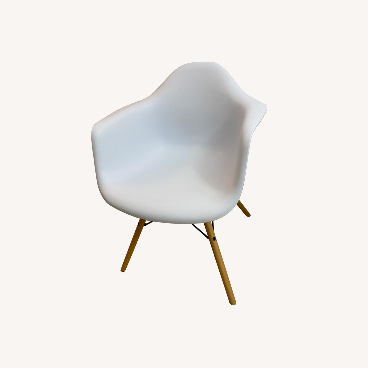 Seller's Notes:Modern white arm chairs. Cleanly used. There are four of them. Originally purchased for 106 USD each in Oct 2020.