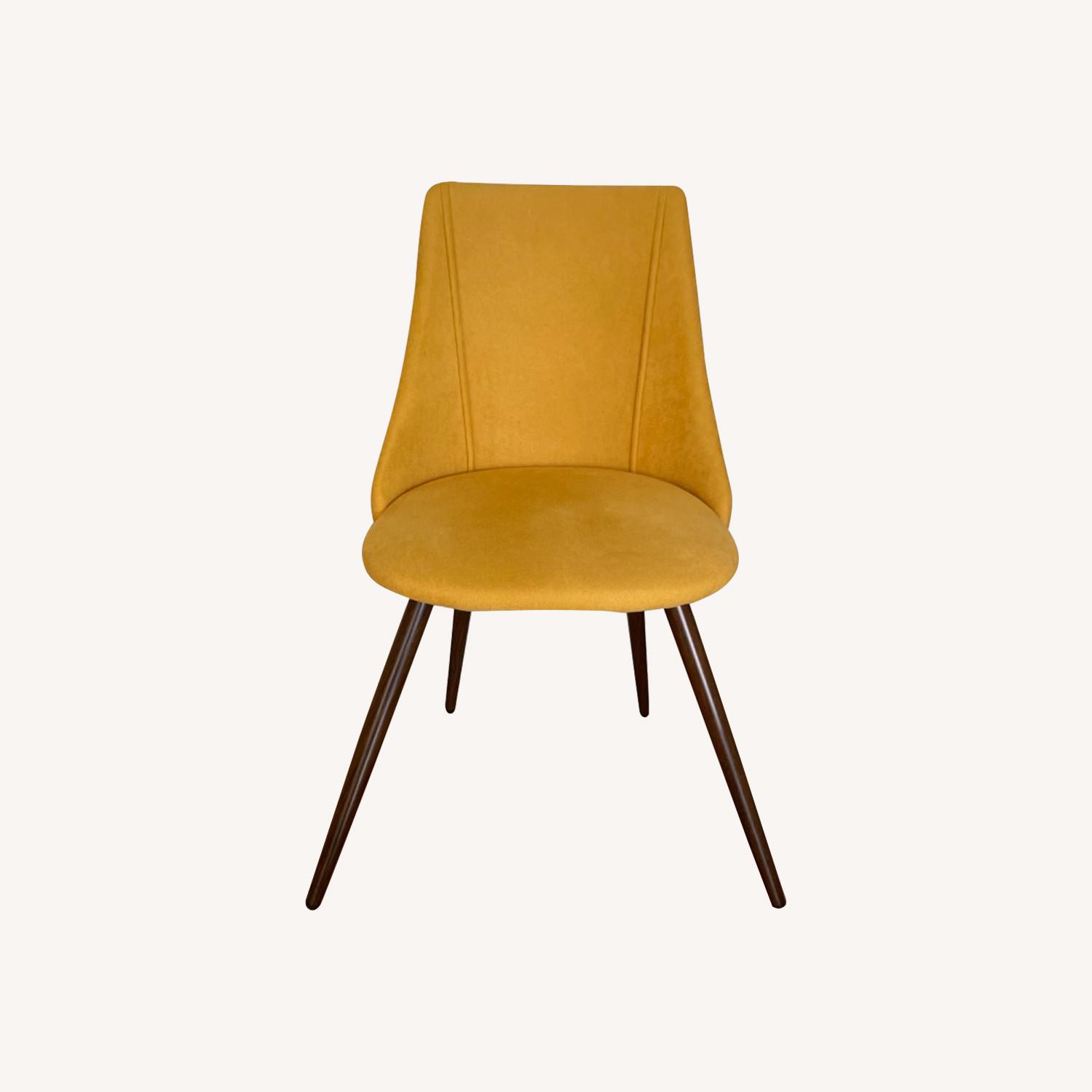 Seller's Notes:Fashionable and attractive mustard yellow velvet dining chairs. Barely used!