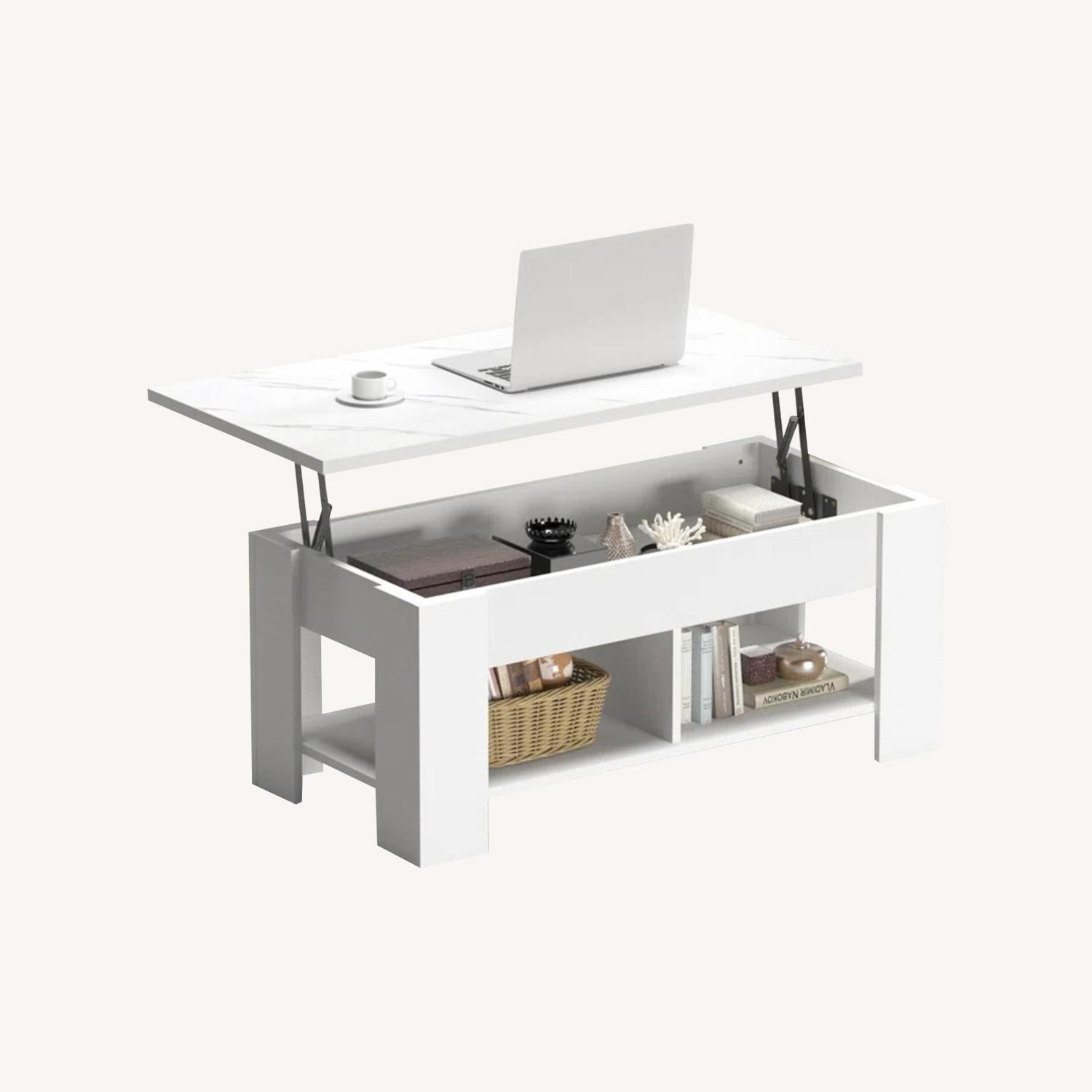 Seller's Notes:Our lift-top coffee table features a wooden top that smoothly raises or lowers by a high-quality metal mechanism and spring. Great for a laptop, writing surface, or tray, this table is versatile and dynamic. It has a dynamic frame made from steel and engineered wood with a distinctive finish that works nicely with just about any style or color scheme. Two lower shelves at the same height give you spots for board games, blankets, and baskets. And the upper compartment is the perfect stowaway location for remotes and coasters. This table can support up to 200 lbs.