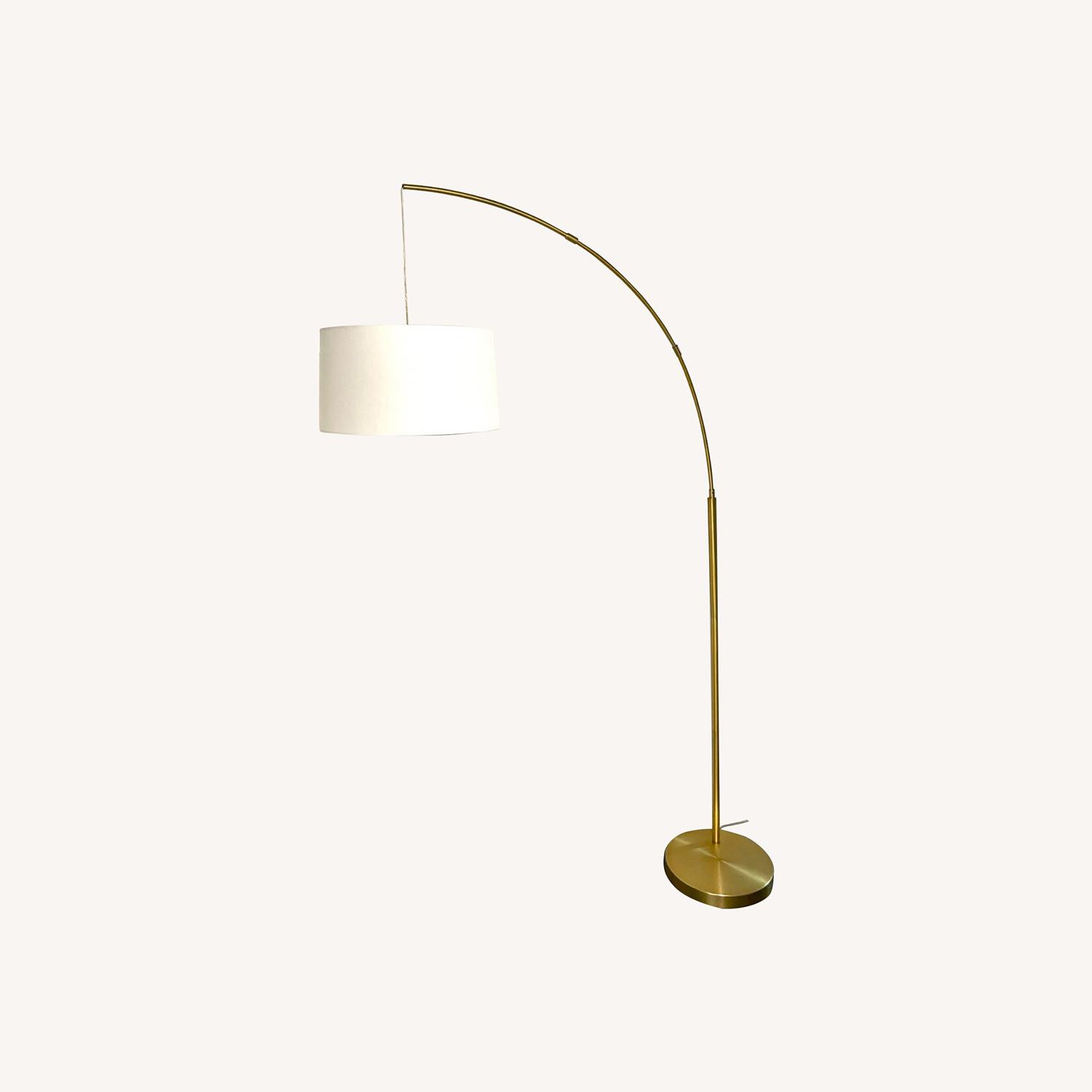 Seller's Notes:Modern Brass gold floor lamp. Arcs over a desk or sofaf. Nice accent piece