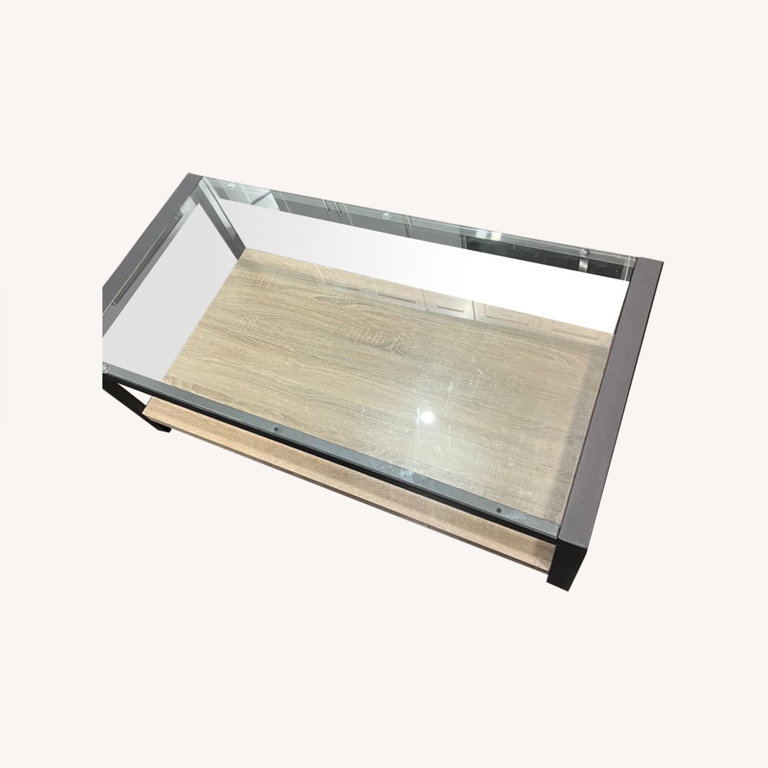Seller's Notes:Glass and wooden coffee table. Sleek, simple, design, provides the space to display magazines and serve yummy treats, hold your drinks or keep your TV remote handy. I’ve had it for two years and it’s held on so strong it’s soo durable used to put my TV on top of it and now there is no longer use in my small apartment. No visible flaws