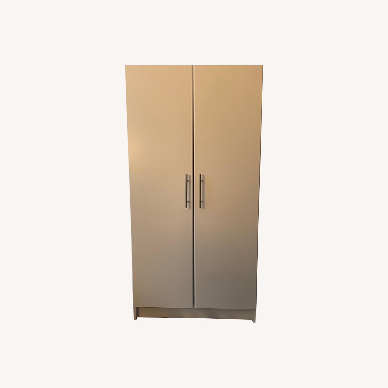 Seller's Notes:This versatile white storage cabinet is ideal for every room. The doors and shelves are perfectly designed as a kitchen pantry cabinet, a bathroom storage cabinet, or a storage closet. The design features two modern and sleek doors with six-way European hinges for a personalized fit. Inside, you'll find two adjustable shelves and a fixed shelf, offering 34% more space than standard cabinets, making it a great food pantry cabinet for the kitchen or garage. The sleek white finish gives an elegant touch to any decor. Dimensions: 16" D x 32" W x 65" H externally and 15.75" D x 30.25" W x 59.5" H internally, this cabinet can suit various space needs. Features: • Made from non-toxic, CARB-2 compliant laminated composite woods, this tall storage cabinet guarantees long-lasting and eco-friendly storage. • 3 Shelves: 2 Adjustable Shelves