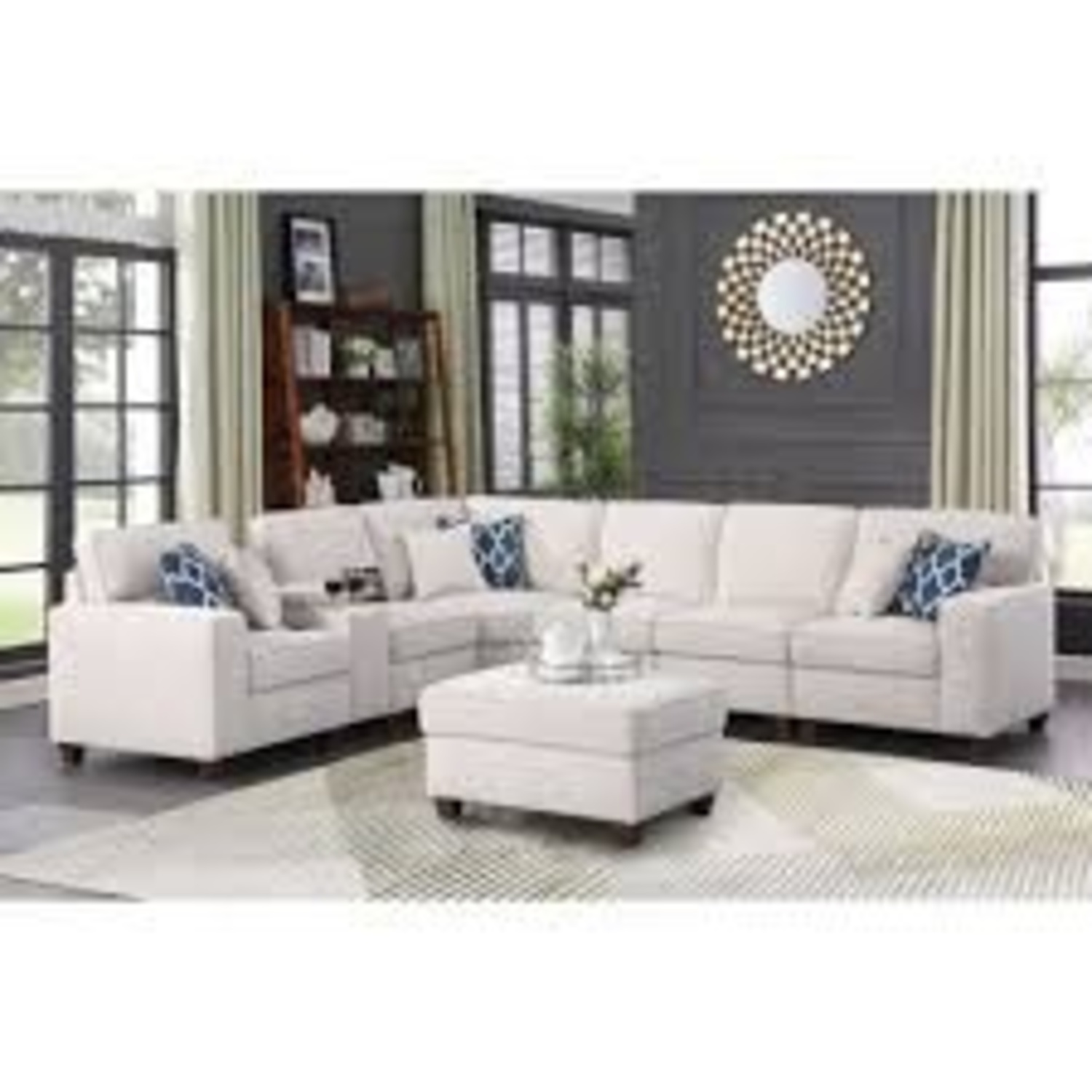 Seller's Notes:Chic corner comfort. Our L-shaped sectional is designed for the modern home, featuring rolled arms and a chenille upholstery that adds a touch of luxury. The solid and engineered wood frame ensures a lasting foundation, while foam-filled cushions offer ample seating for six. An included ottoman and six accent pillows complete the look. This modular design is perfect for lounging with friends or enjoying movie night with the family. Just add some cozy blankets and get the movie started.
