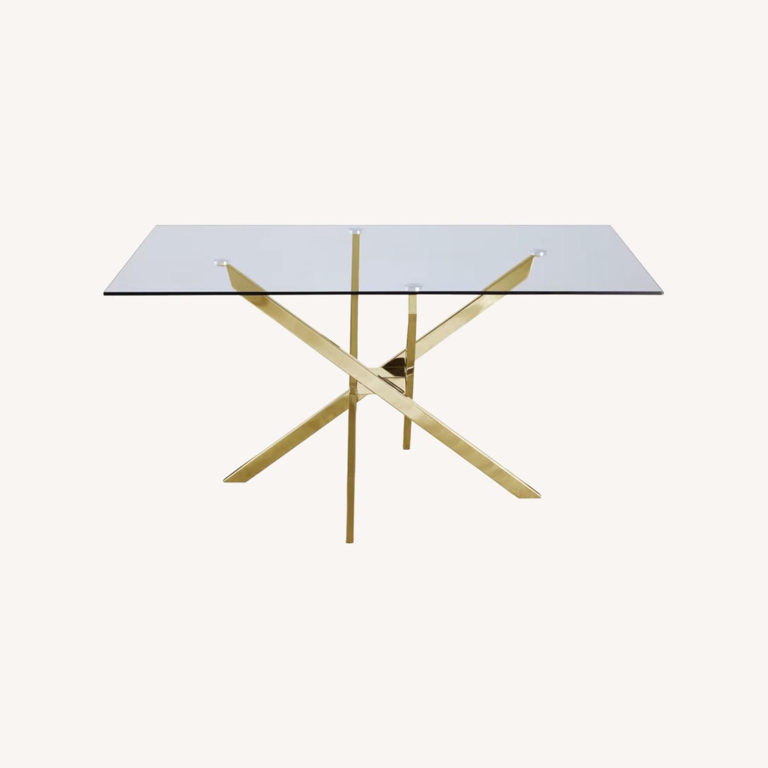 Seller's Notes:Beautiful glass counter with gold legs. Can comfortably sit 6 people, can stretch to 8 with small chairs!