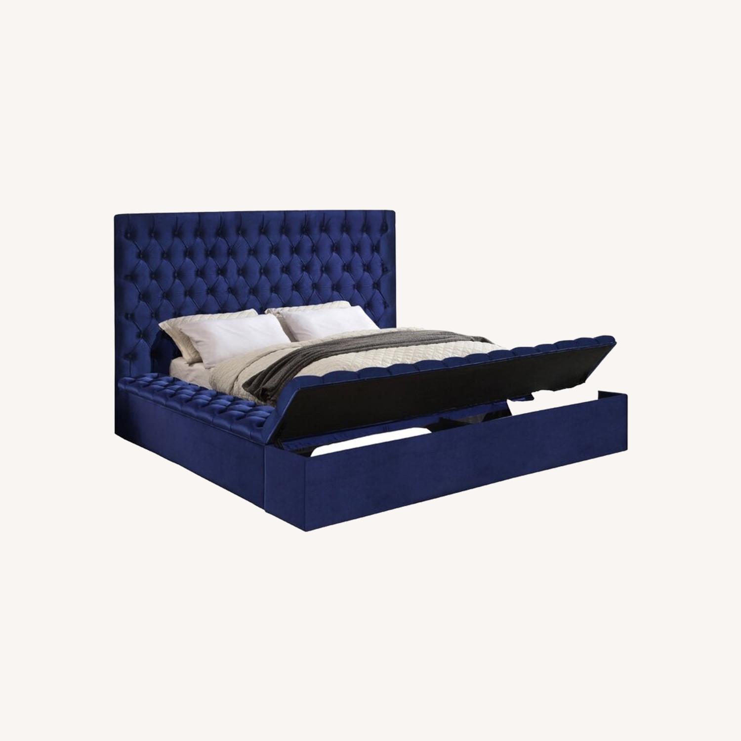 Seller's Notes:Large beautiful not damaged queen navy bed with storage