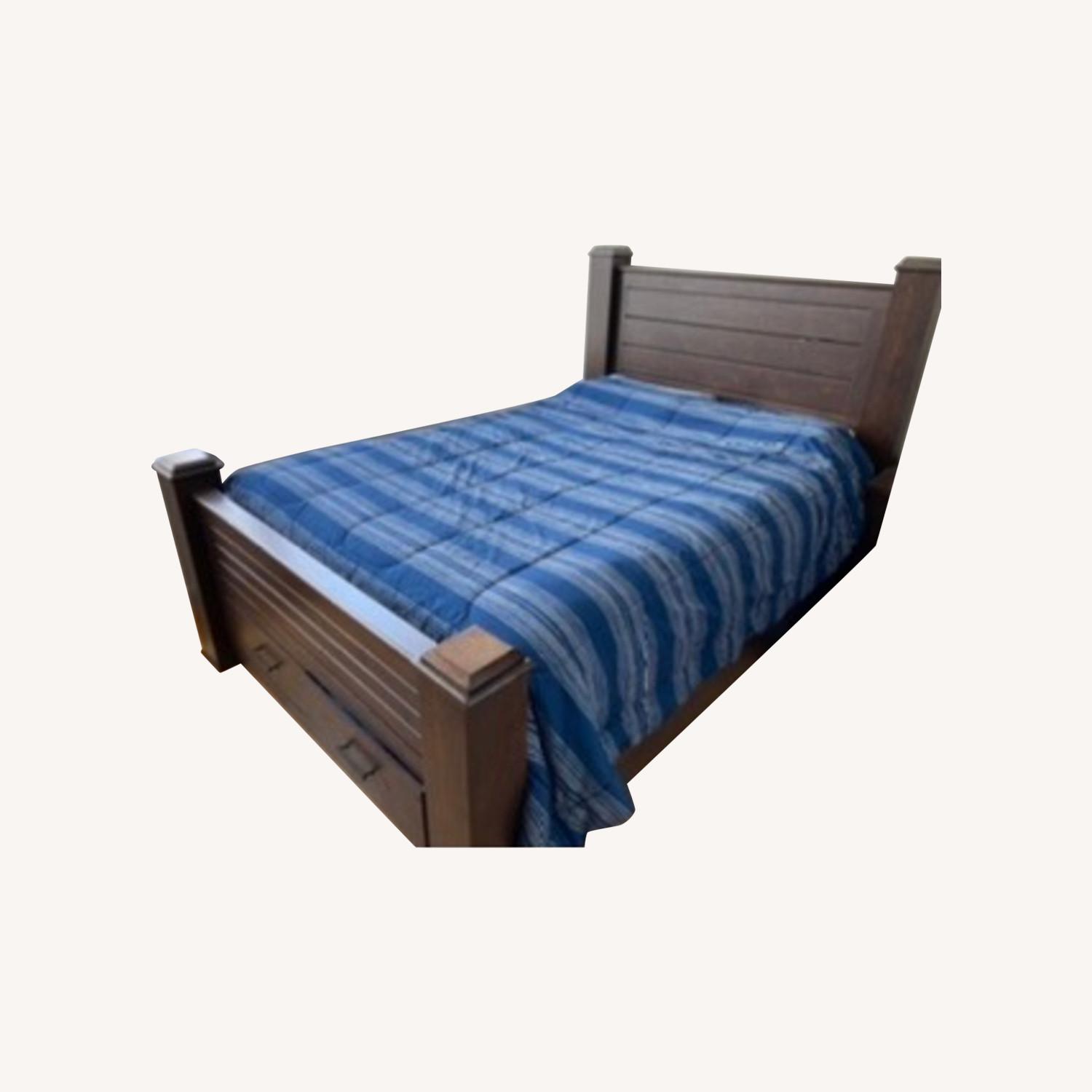 Seller's Notes:Gently used queen platform bed frame with storage drawers.