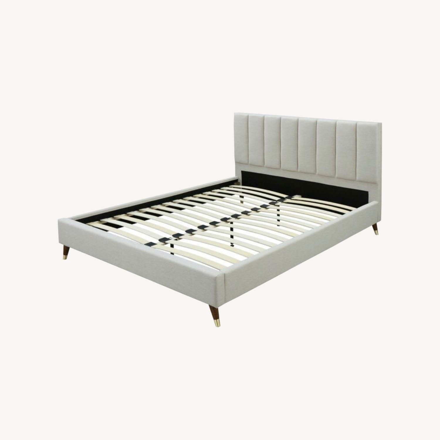 Seller's Notes:Beautiful queen upholstered, brass-capped legs platform bed!