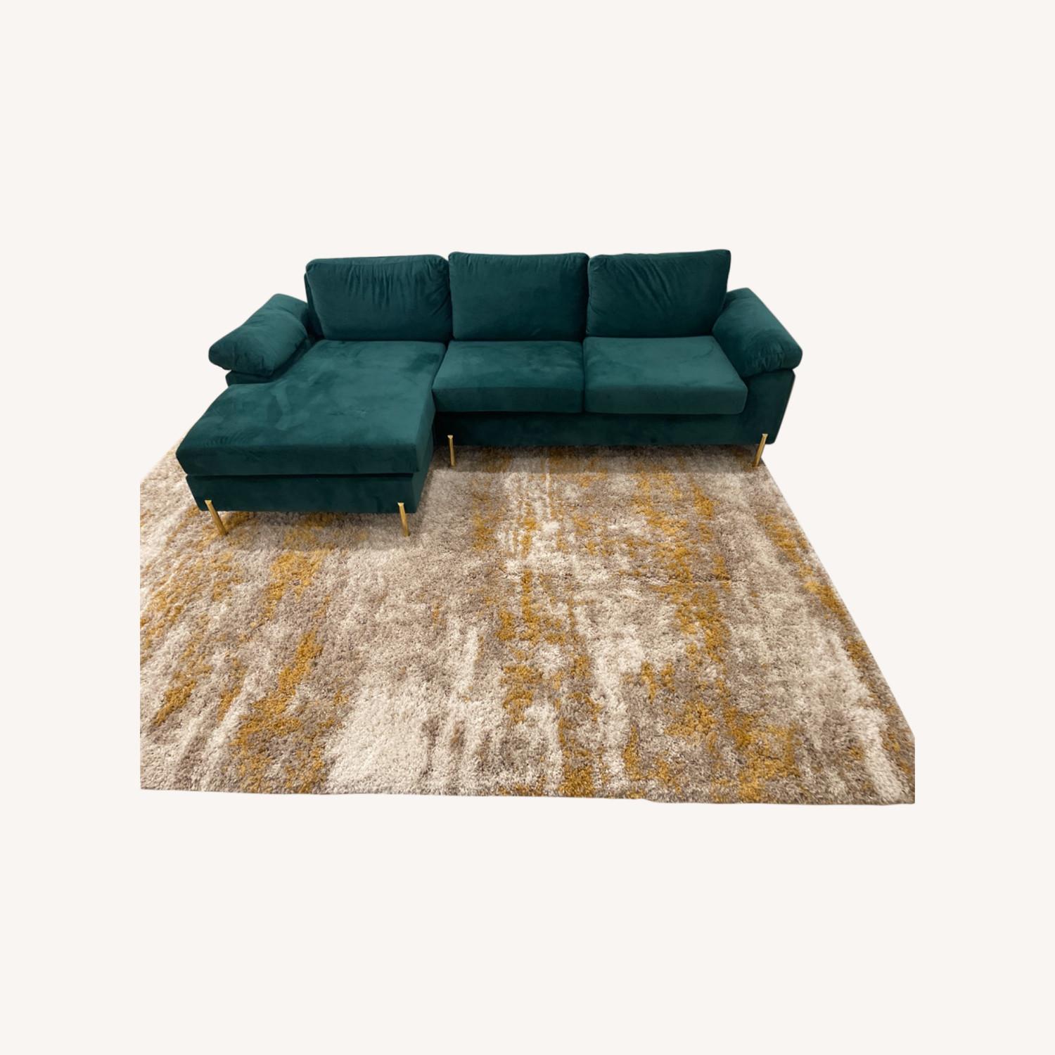 Seller's Notes:Only been used for 2 months. 7x10 and hug enough to be used in the living room or the bedroom. The carpet is soft and fluffy and the colors look much more vibrant in person! No shedding and it doesn’t move at all once placed on the floor! The gold and beige and gray colors complement each other well and it’s very soft to sit on.