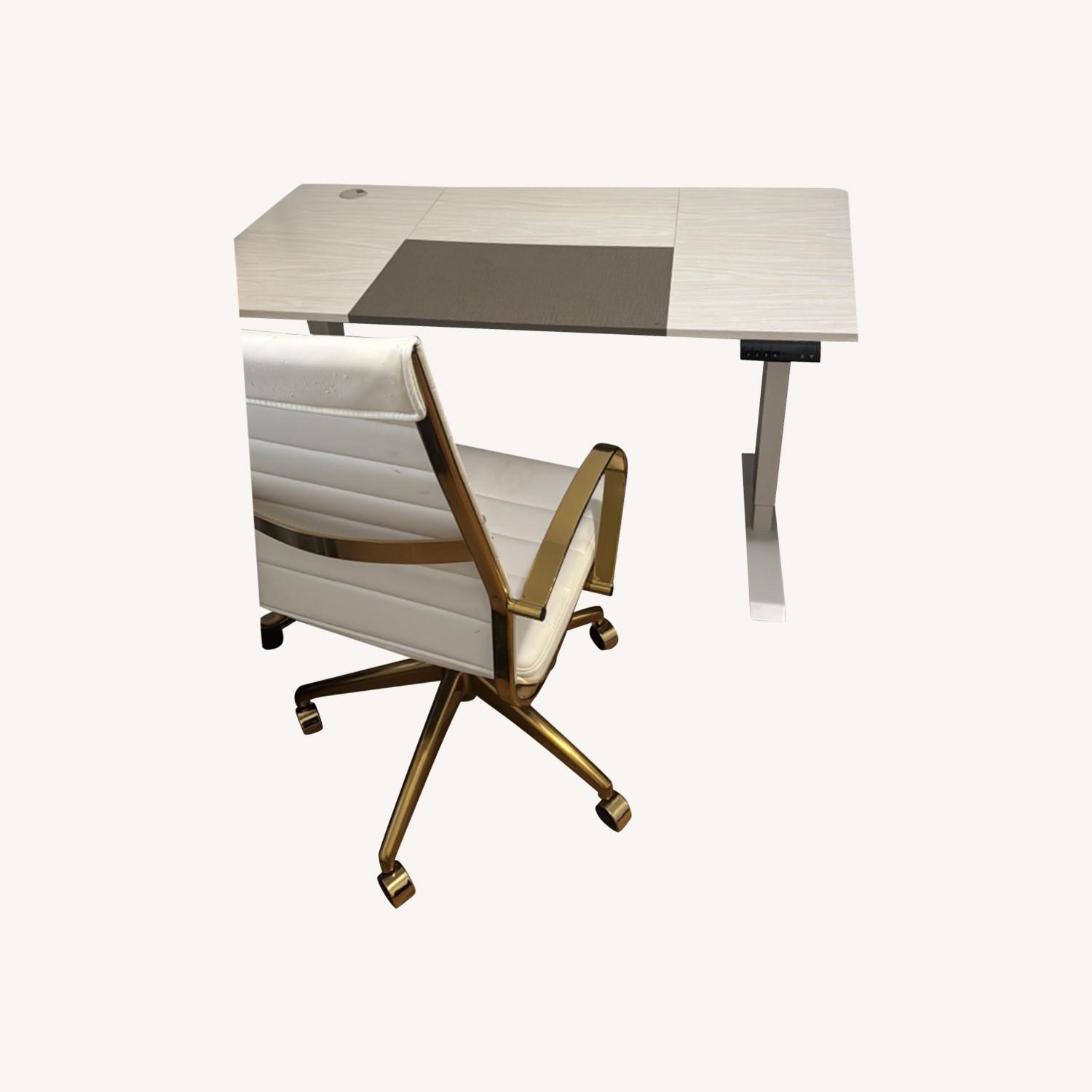 Seller's Notes:Desk with control to turn into standing desk. 55.25 and 27.75” dimension of table top part $150 and computer chair included $30 Seated height as low as 28” Standing height up to 46” ~NCI