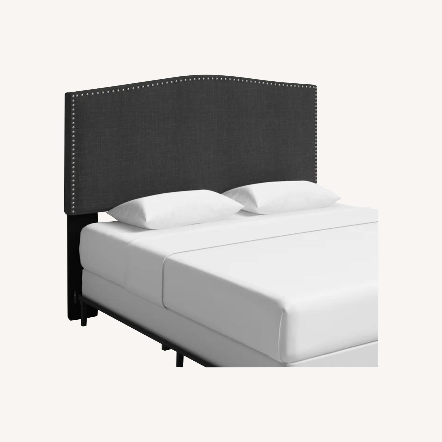 Seller's Notes:**will include mattress if you want! Features Extra thick headboard Sturdy construction This upholstered panel headboard brings classic details and an understated palette to your main or guest bedroom. It's wrapped all over in polyester-blend fabric in a neutral hue, and it's filled with foam for extra support as you read or relax. This headboard features a camelback silhouette, with nailhead trim adding a tailored touch. It includes pre-drilled holes that let you mount it directly to your bed frame, and it's height-adjustable to suit your needs. This versatile headboard complements traditional and modern farmhouse decor styles alike.