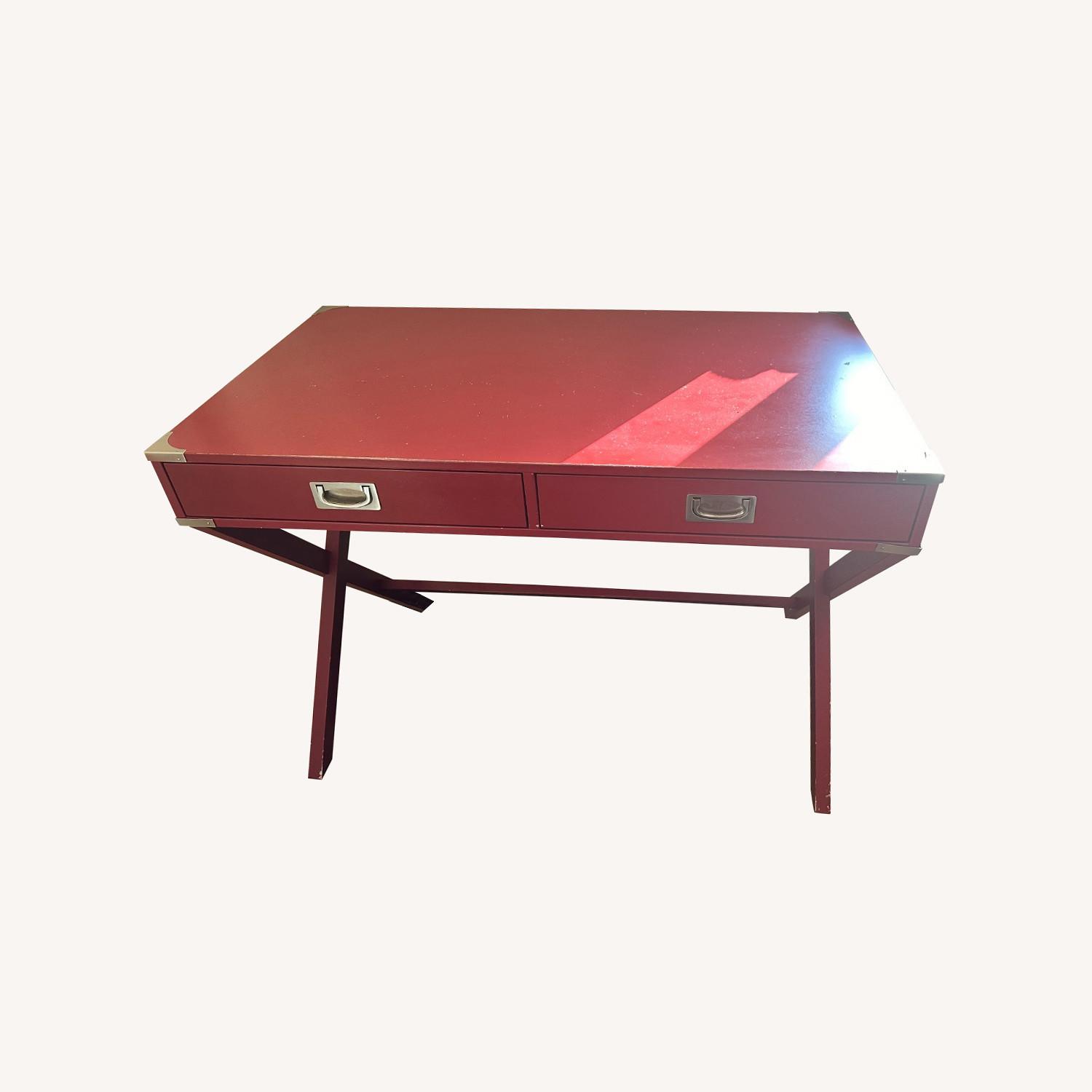 Seller's Notes:Whetzel Writing Desk from Wayfair. Purchased in November 2020. Good looking desk in good condition - some scratches. Great for students. Dimensions: W42" x D23.75" x H30" Color: Samba Red