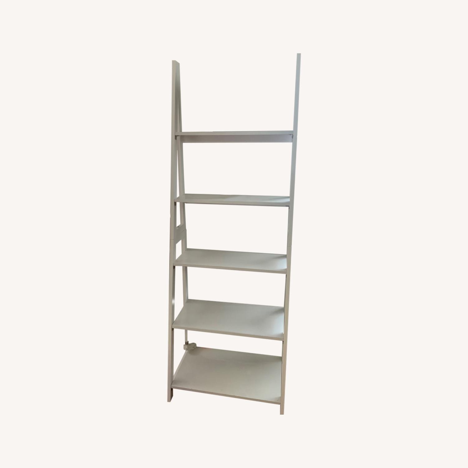 Seller's Notes:White bookcase with different size shelves. I used this to store and display glassware