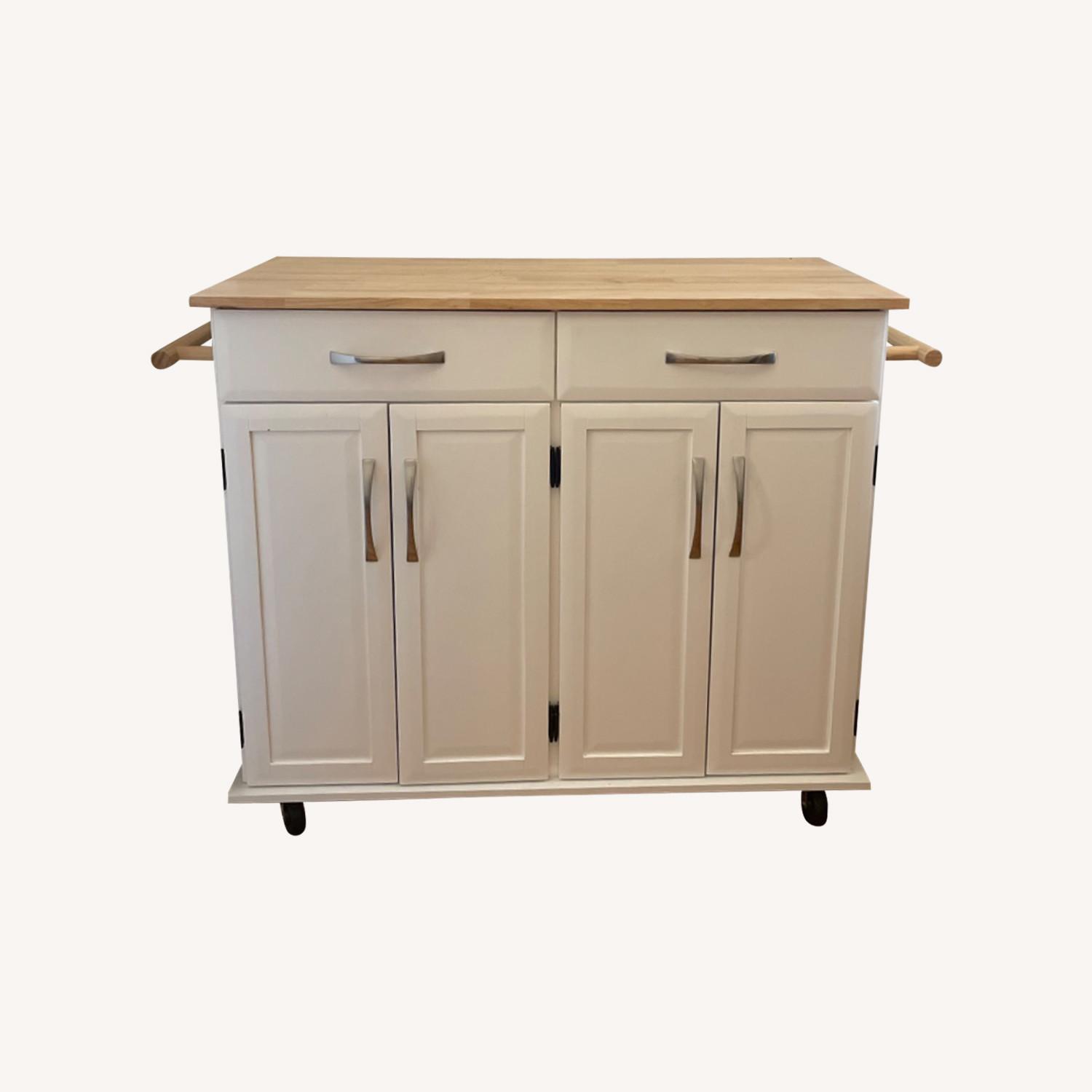 Seller's Notes:This kitchen cart features concealed cabinets, a towel bar, providing ample storage for all kinds of kitchen utensils and supplies. One adjustable shelf behind each door. Shelves can be locked in place at 3 fixed levels based on your selection. In excellent condition. 35.4" H x 45.8" W x 18.5" D. Pet and smoke free home. Pick up on 83rd and York before 6/30 in a walkup building.