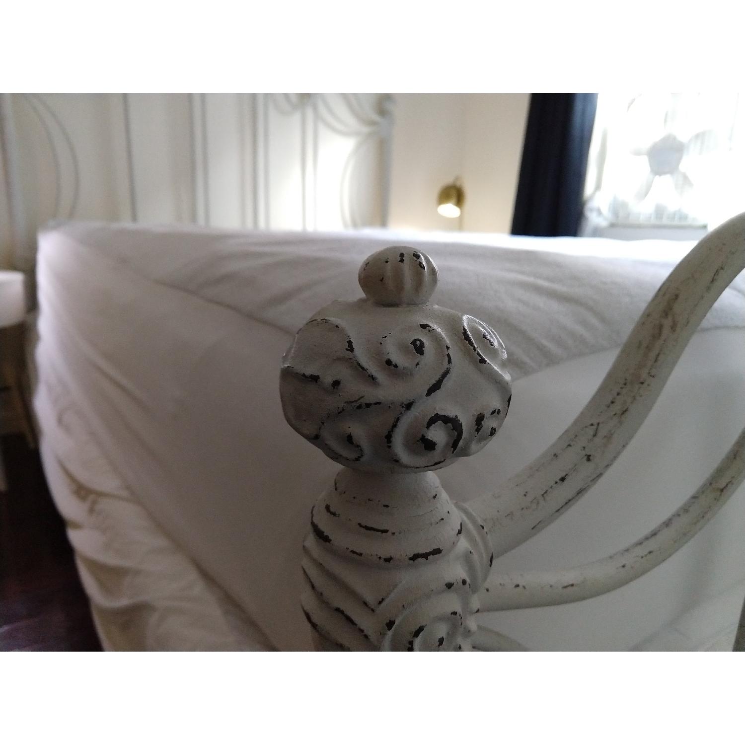 Seller's Notes:Wesley Allen Marlow Queen Iron Bed Frame We have the Headboard, Footboard and Frame with Distressed White that is hand finished by the manufacturer to give the frame a vintage look - this also makes any wear on the headboard and footboard invisible. This is a very sturdy piece that will last a long time. We are moving cross country, and are selling all of our furniture or we would never part with this piece.