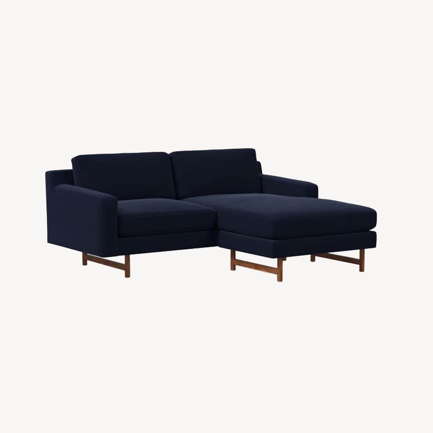 West Elm 2-Piece Blue Suede Sectional Sofa