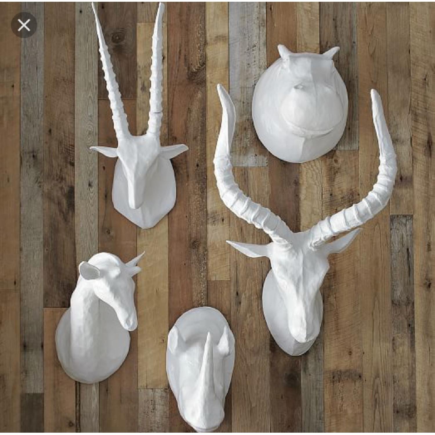 Seller's Notes:3 super cool west elm papar mache heads. Makes a great statement price. Handmade in Haiti. As part of a collaboration with Caribbean Craft, we worked with artists in Port-au-Prince to create witty riffs on African safari animals. Made entirely from recycled materials, this all-white Impala and bulls, cobrings a wild side to walls in the most responsible way. 23"w x 18"d x 34"h = impala measurements. White papier-mâché. Meet the maker of this handcrafted piece. Made in Haiti.