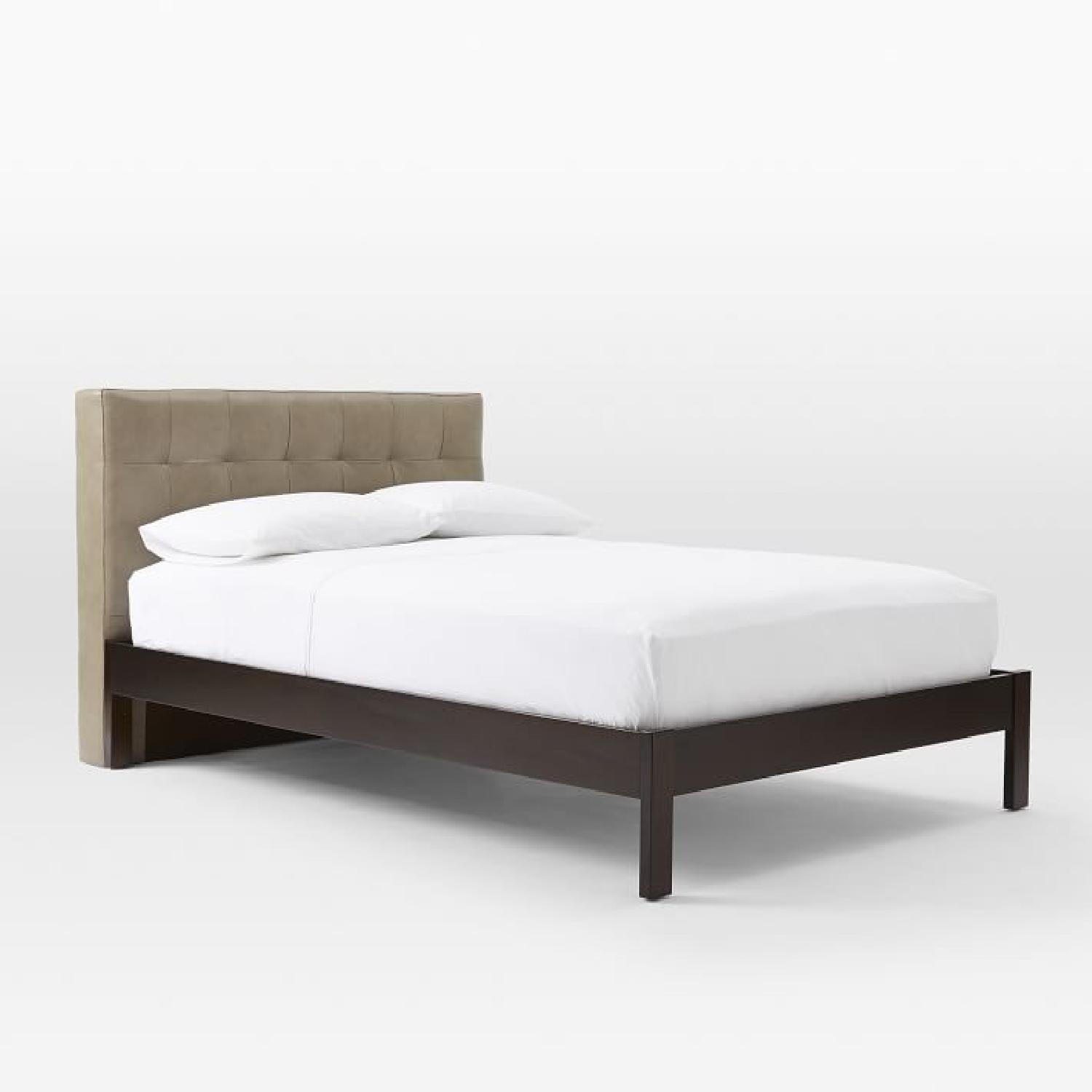 Seller's Notes:Four piece bedroom set from West Elm. Queen sized bedframe with fabric headboard, two nightstands and 6 drawer dresser. The dresser and nightstands are the "Niche" collection. They have metal hardware with brushed-nickel finish. Drawers open on smooth metal glides. The wood of the dresser, nightstands and bed frame is "chocolate" color. The headboard is a tufted beige suede fabric. Measurements for all items: Each nightstand is - 18 x 16 x 25.5 inches The headboard is - 62 x 48 inches (from floor) The bed is standard queen size, 87 inches long Dresser is - 51 x 18 x 35 inches All items are in very good condition. No visible scratches on the matching nightstands. Very minor nicks on the dresser. Small scratch on the leg of the bed that is in the last photo - will be covered with bedding. https://www.westelm.com/products/niche-nightstand-chocolate-g972/