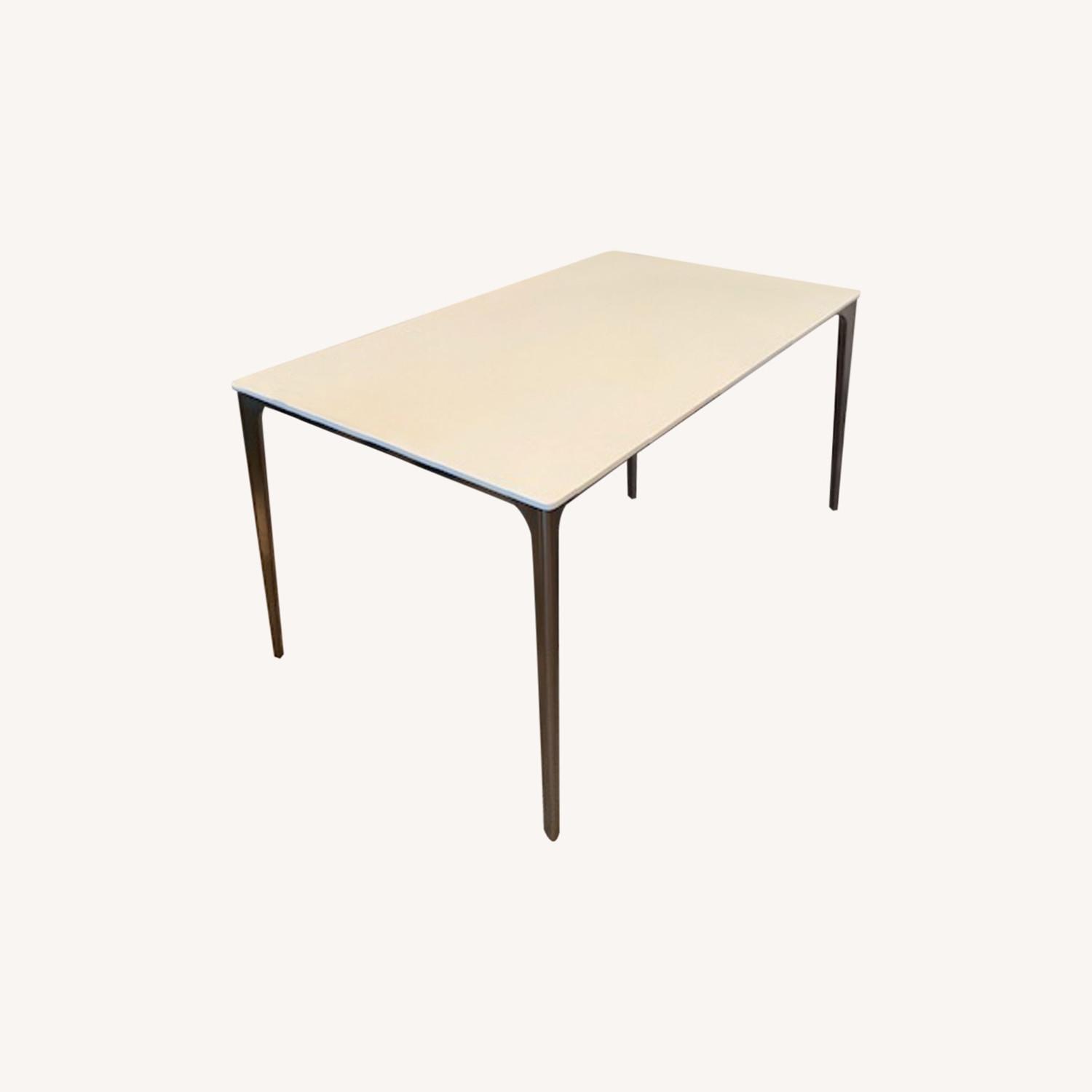 Seller's Notes:I bought this beautiful table when I moved to the Bay Area in January 2020, dreaming of all of the dinner parties I would host. Needless to say, none were thrown, and this table has gone largely unused. I'm moving back to the East Coast this month and won't have space for it in my new place. It's no longer listed on West Elm's website, but MSRP was $699. I'll also be selling all four Slope Leather Dining Chairs in Navy.