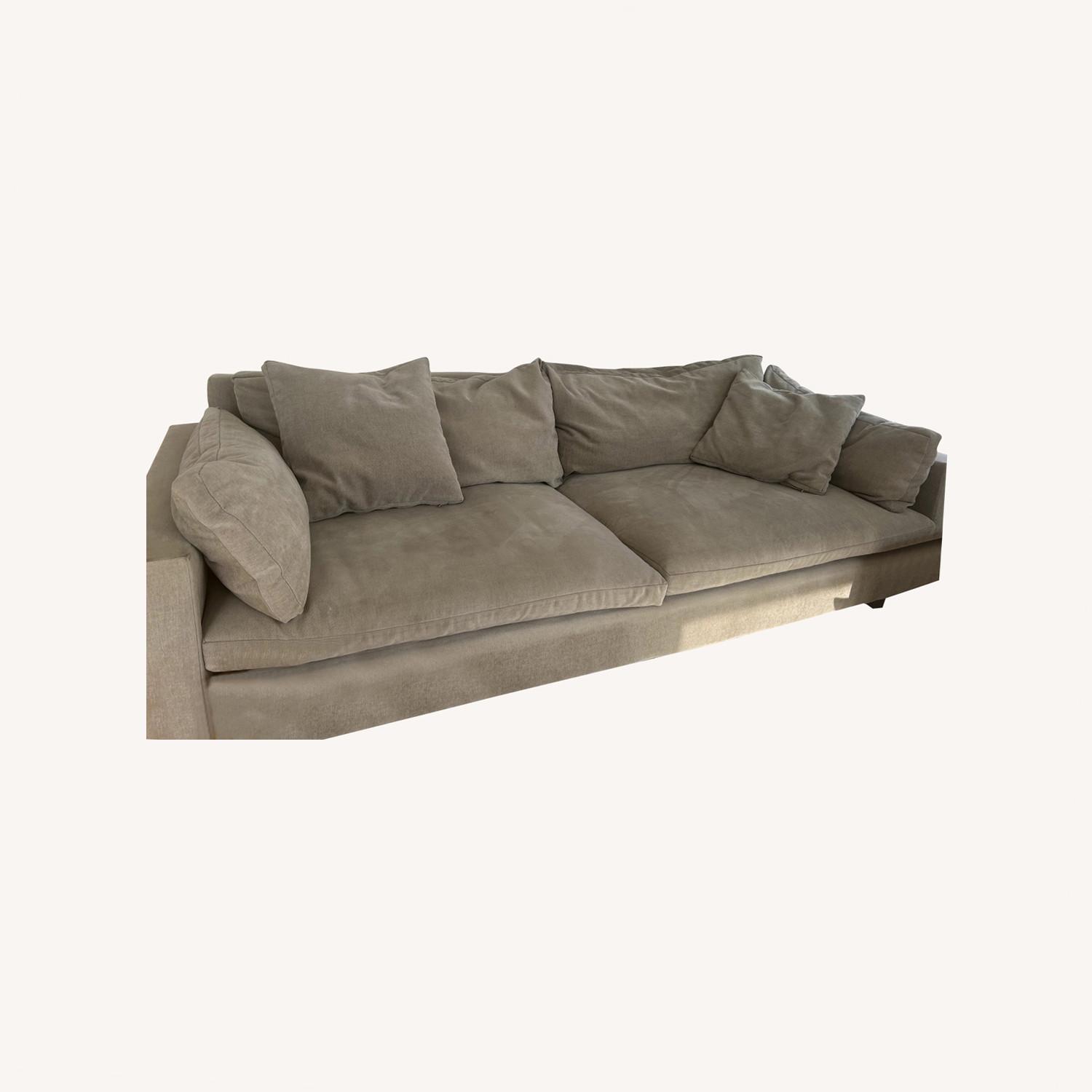 Seller's Notes:West Elm Harmony sofa in 92'' width, 41'' depth, Dune Distressed Performance Velvet. Orginal price 2,499 plus tax/shipping. Used but in good condition, this performance fabric really holds up. We love it but upgrading to a larger sectional. Covers can be washed. One of legs has some damage (see photo) but you barely notice it there.