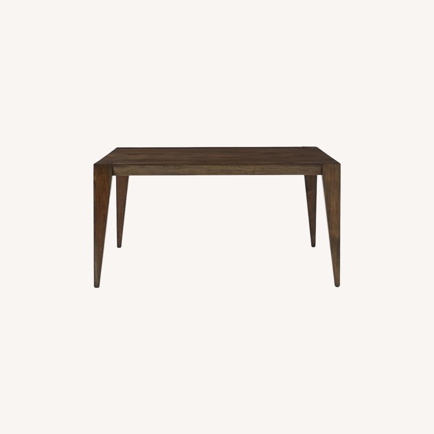 Seller's Notes:Designed to suit any style, our Anderson Dining Table's exaggerated, angular legs add a modern edge to its clean-lined form. We love how the rich grain of the acacia wood comes through the carob finish. It's roomy enough to seat a party of six. 60"w x 36"d x 29.6"h. Solid acacia wood with a water-based Carob finish. Natural variations in the wood grain and coloring are to be expected. Imported.
