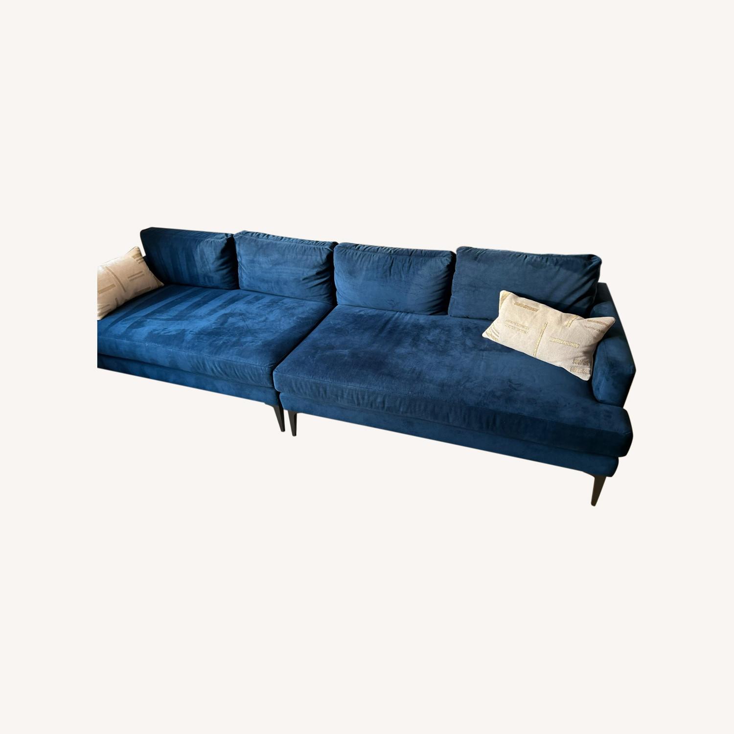 Seller's Notes:Gorgeous blue sofa available that is practically like new. We cleaned and vacuumed it regularly and no scratches on the legs. We simply don't have room for it anymore.