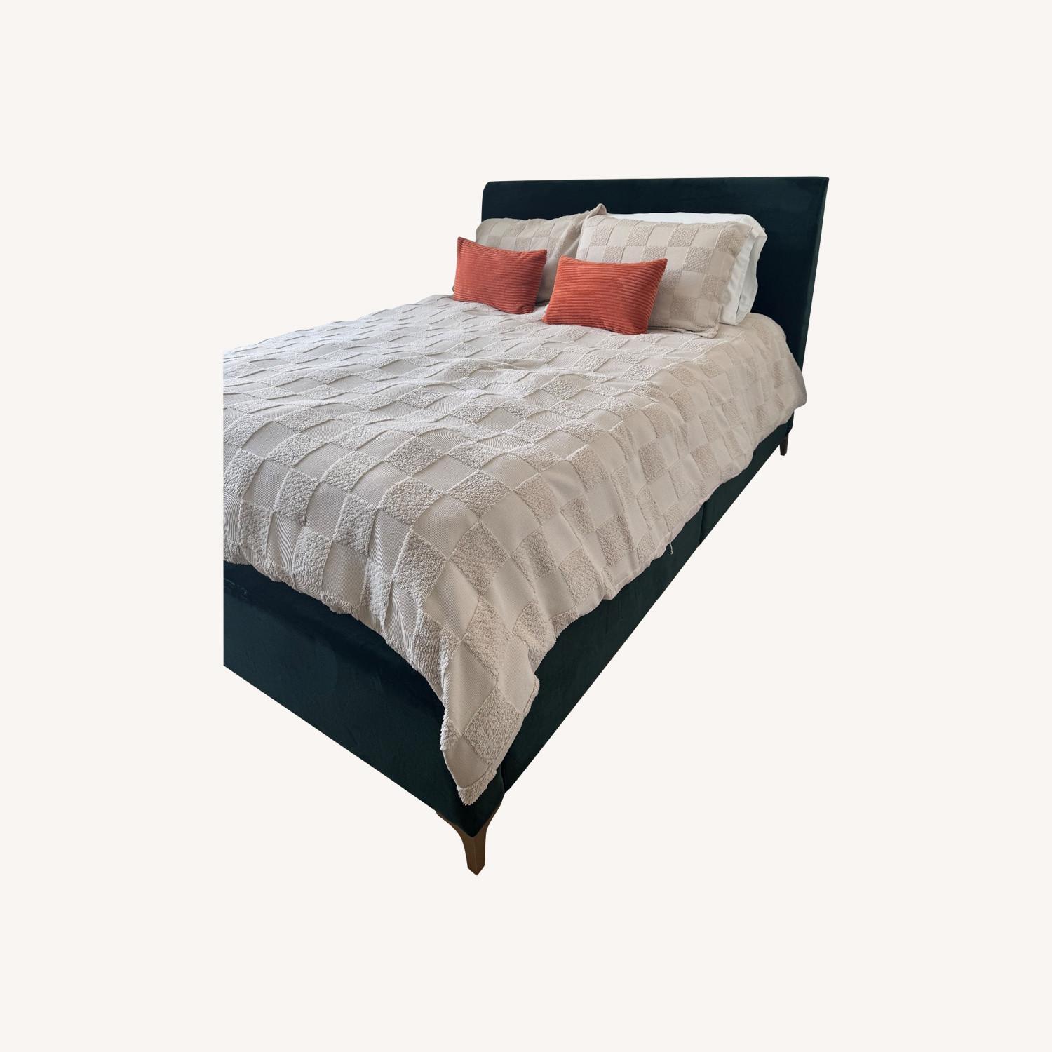 West Elm Andes Green Velvet Queen Bed