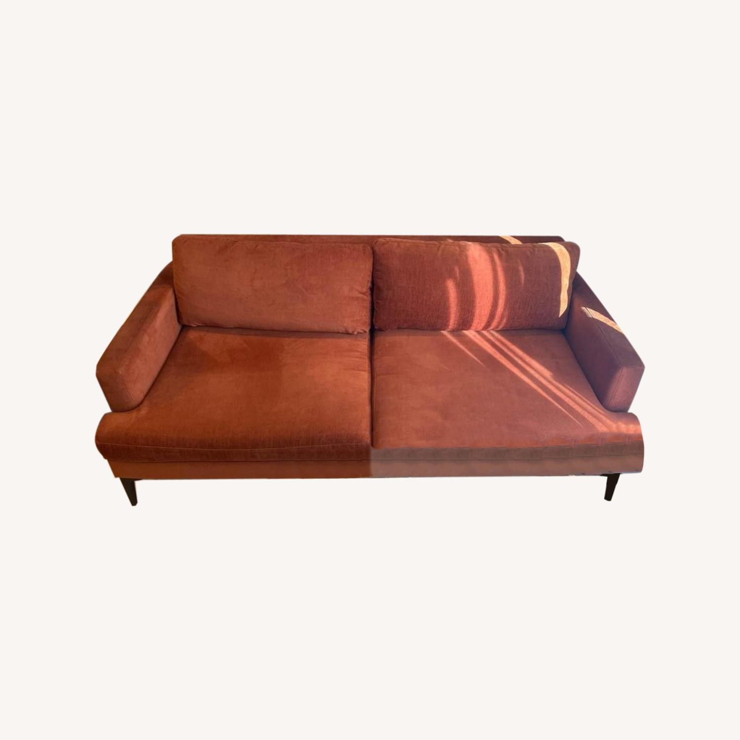Seller's Notes:West Elm Andes Sofa (Used 6 months) Width: 77" Width Depth: 34" Depth Cushion Style: Multi Seat Fabric and Color: Burnt Umber, Distressed Velvet Leg Style: Dark Pewter Original product listing: https://www.westelm.com/m/products/andes-sofa-h1844/ Original price: $1,999 (currently takes 12+ weeks to ship from West Elm) Selling for $750 (can pick up mid-Feb)