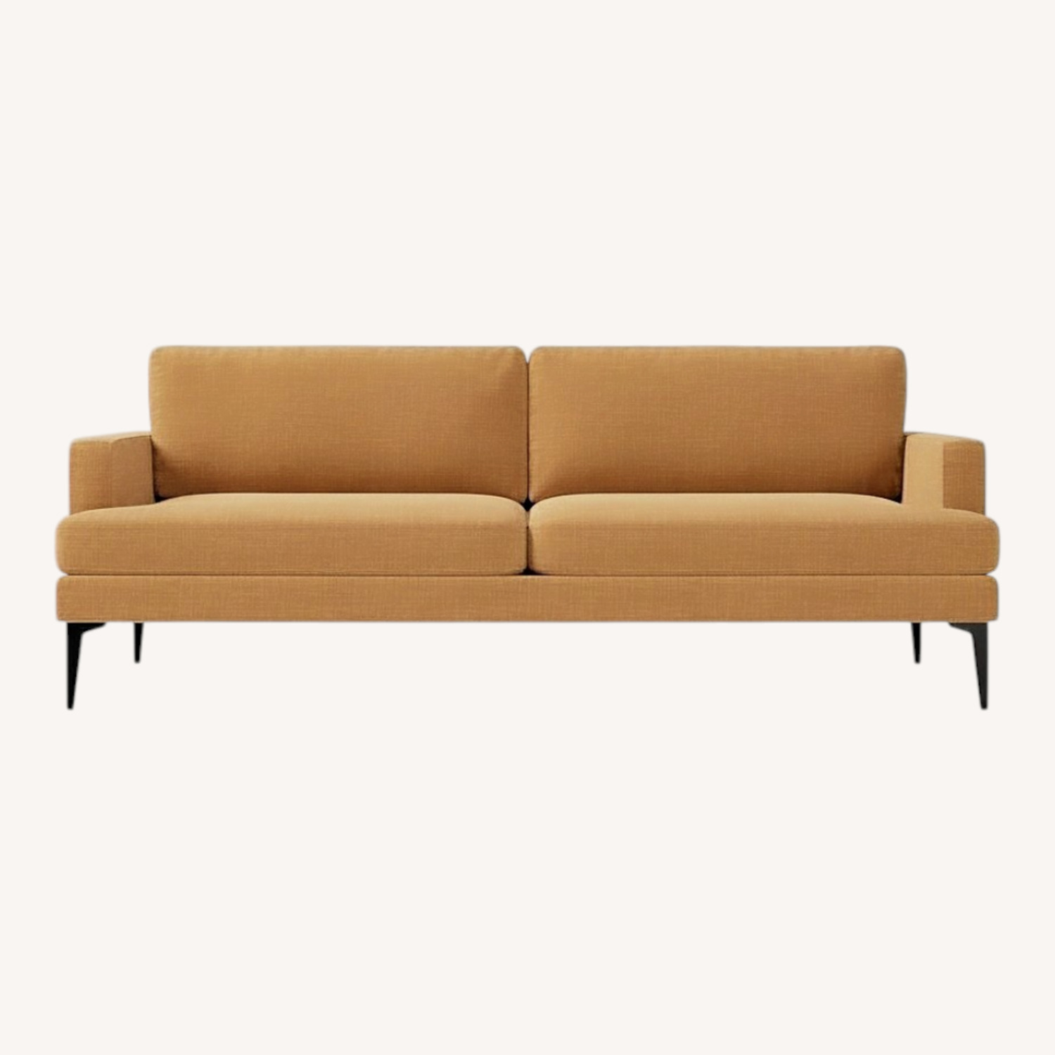 Seller's Notes:This is a beautifully designed, mid-century modern sofa featuring clean lines, slim track arms, and sleek dark metal legs that give it an elevated, airy feel.
