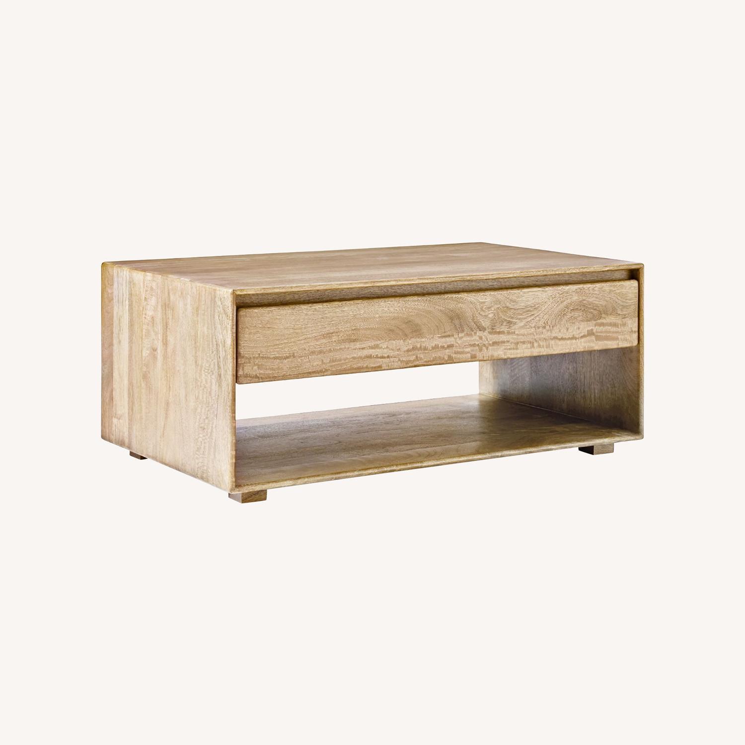 Seller's Notes:Solid mango wood. The mango wood used on this product is sustainably sourced from trees that no longer produce fruit. 1 drawer opens on metal glides. Open bottom compartment. Made in a Fair Trade Certified™ factory, empowering workers who made it. Made in India.