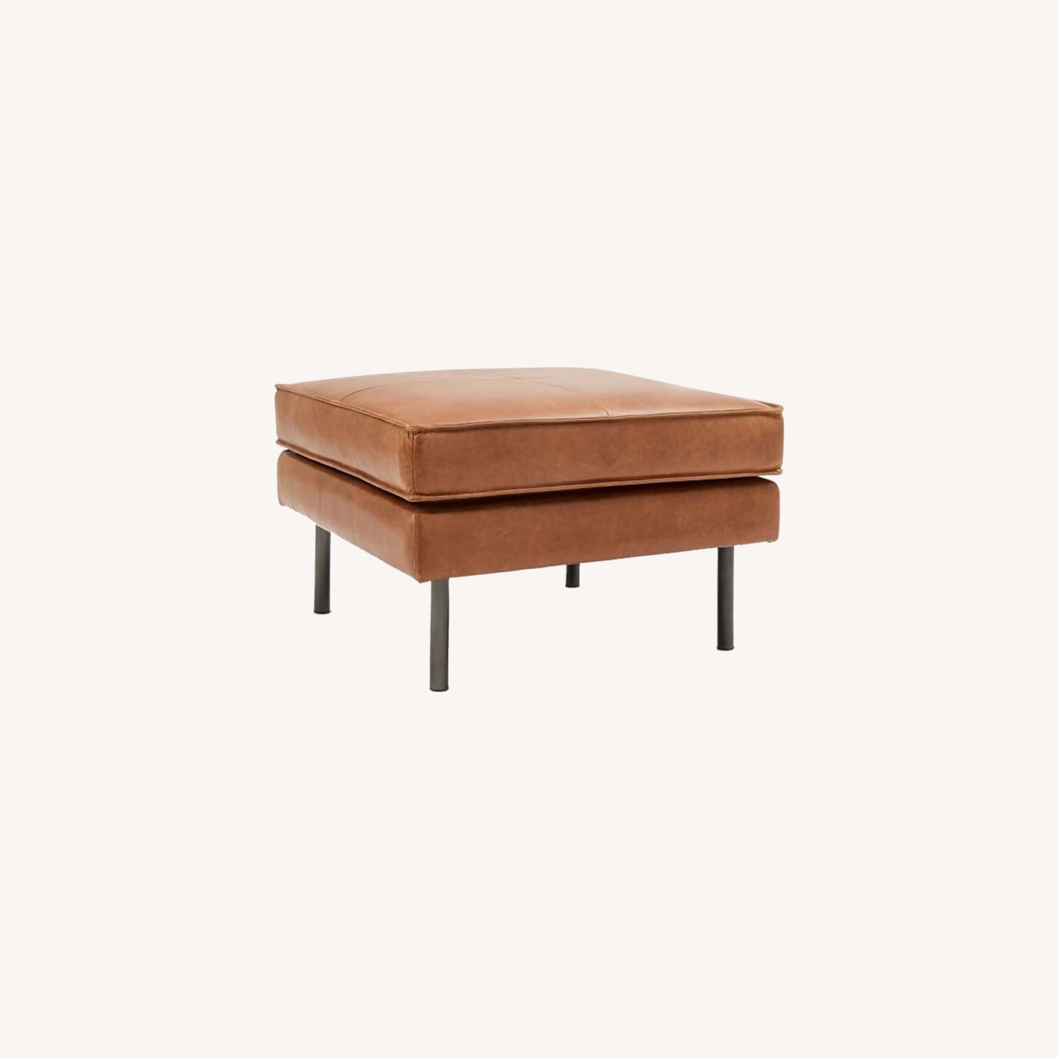West Elm Axel Ottoman, Saddle Leather, Nut