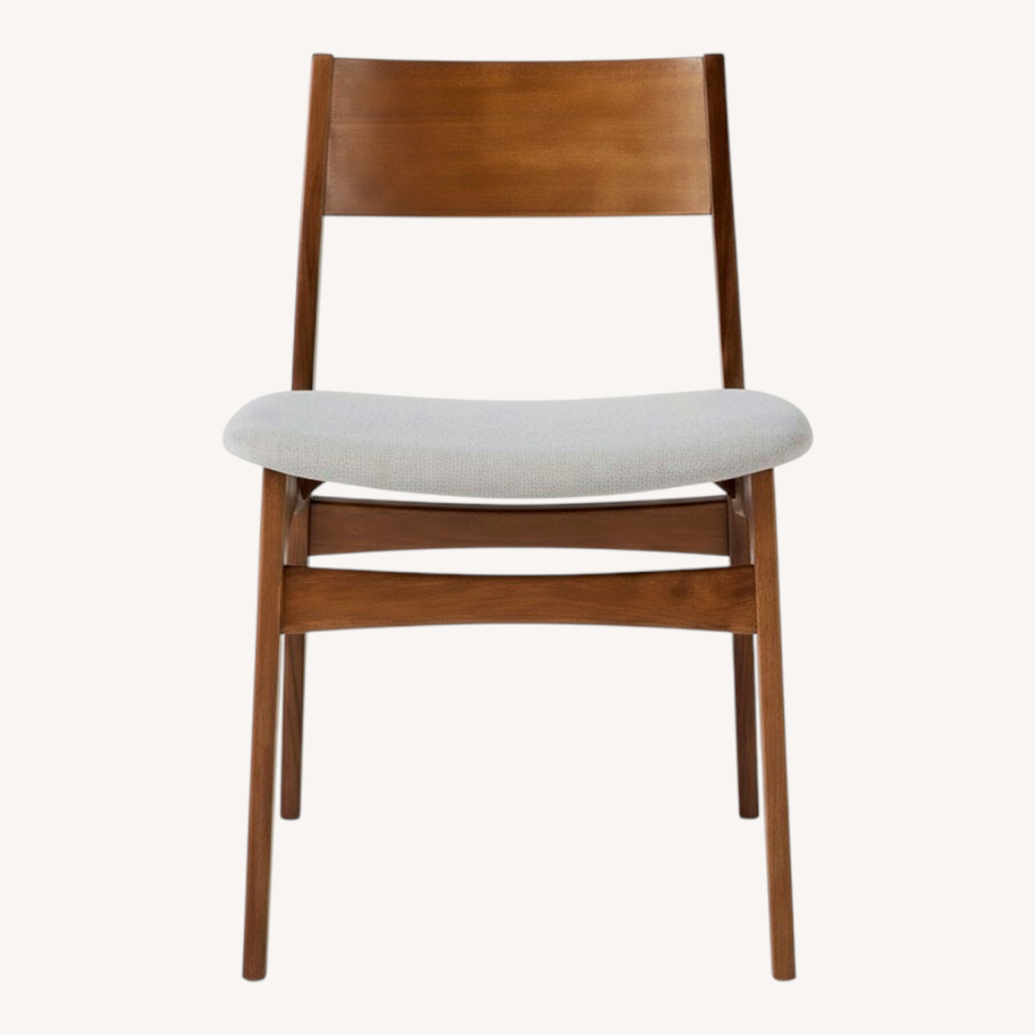 Seller's Notes:Chairs are on sale due to upcoming move, they have no defects and were purchased a year ago. Material of seat: twill in dove color Color of legs: walnut