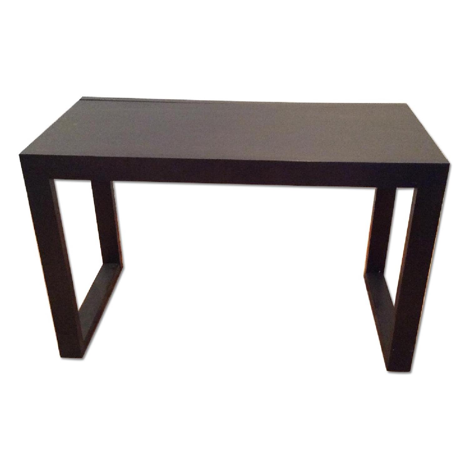 Seller's Notes:Brand: West Elm Style: Basic Parsons Desk Color: Espresso brown Description: contemporary-style simple parsons desk with normal wear and tear. Small 1.5" blemish on the top edge of desk. I usually just face blemished side against wall and never noticed it again.