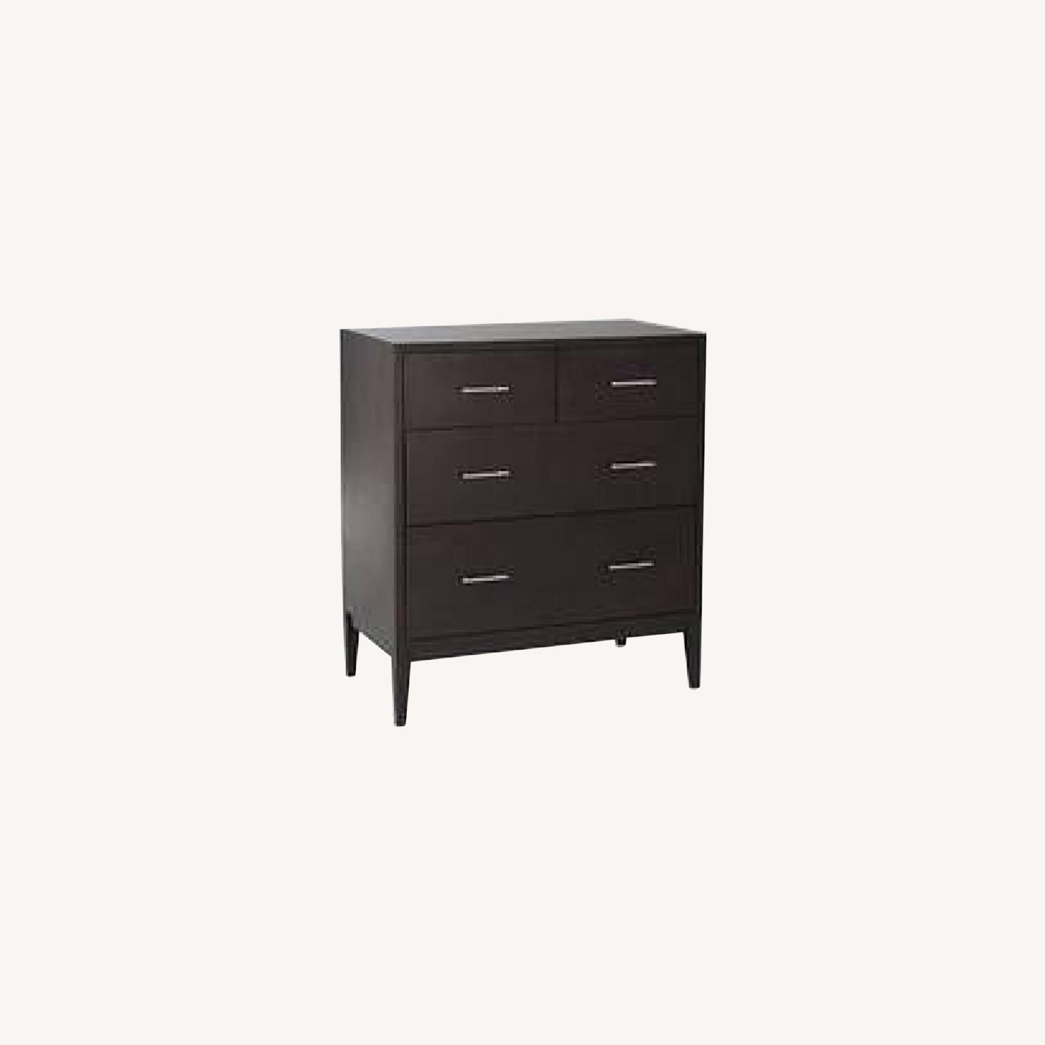 Seller's Notes:West Elm 4 drawer dresser stained dark/black, with 2 small upper drawers and 2 larger bottom drawers. This dresser has served me well for many years and remains in good condition with only several small scratches.